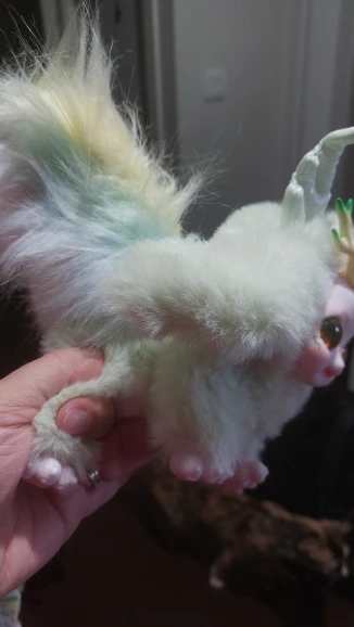 Доставка быстрая, упаковка очень надежная в две коробки. Сам зверек очень приятный и мягкий. Внутри прочный качественный пластмассовый шарнирный скелет ( включая хвост). Крылья имеют проволочный каркас. Очень устойчив. Полностью подвижен. Из плохого: глаза смотрят в разные стороны. Поправить их нет вообще никакой возможности даже изнутри. Так как у всех зверьков на промо фото глаза смотрят в одну сторону - считаю, что это брак. А так как косые глаза повсеместно у всех покупателей, судя по фоткам в отзывах - брак стабильный)) Но, зверек очень милый, поэтому все равно 5 звезд и никаких претензий)) Лапки затонировала и самого зверька немного перешила - сняла крылья и изменила хвост. Теперь он у меня кот) Рога нужно вклеить на клей Момент в пазы, иначе выпадают. В общем то, я довольна зверем. Спасибо производителю и продавцу. Хочу, что бы выпустили аналогичных зверьков ( котиков, собачек и т.д.) но с нормальными глазами!Oxana V. 7 ноября 2024