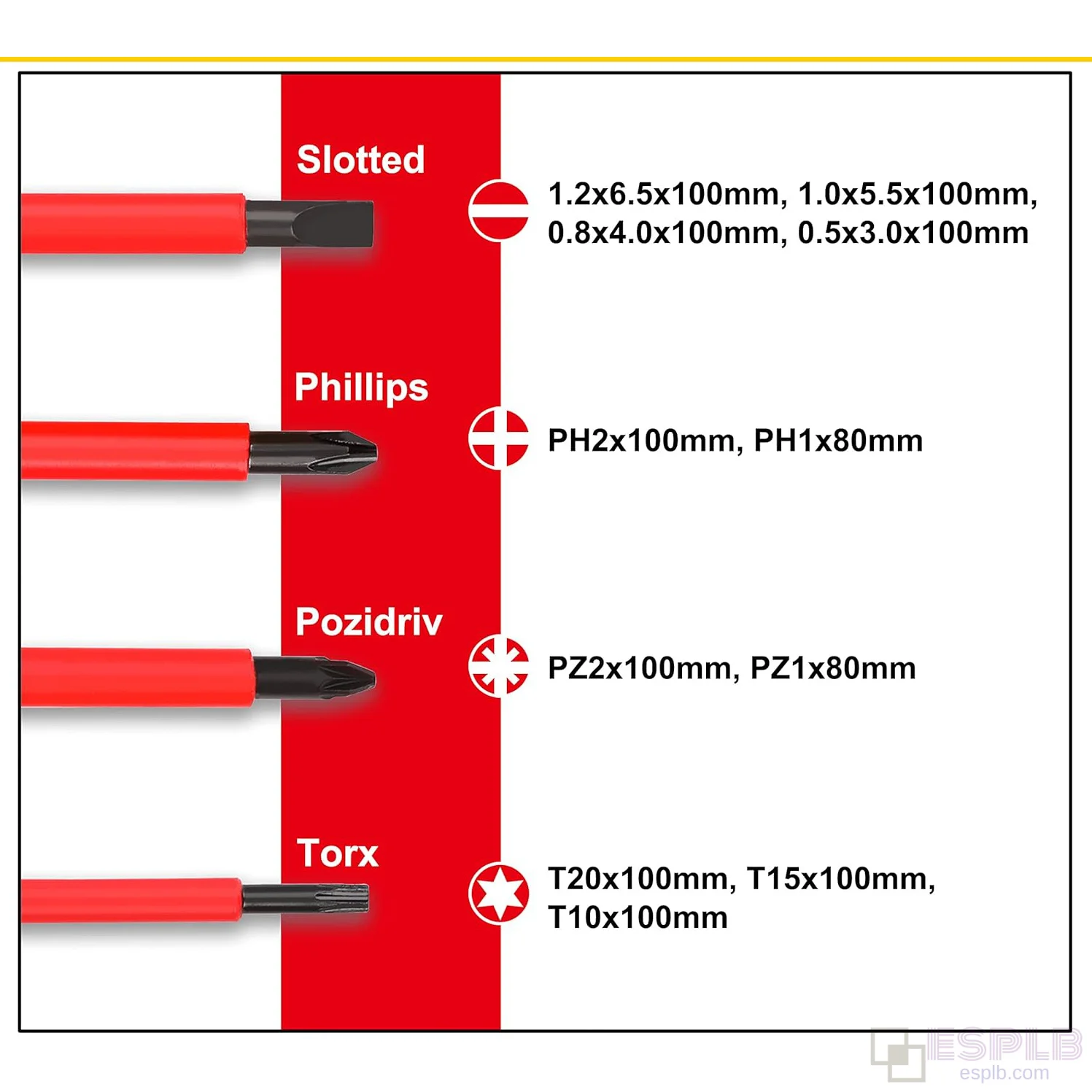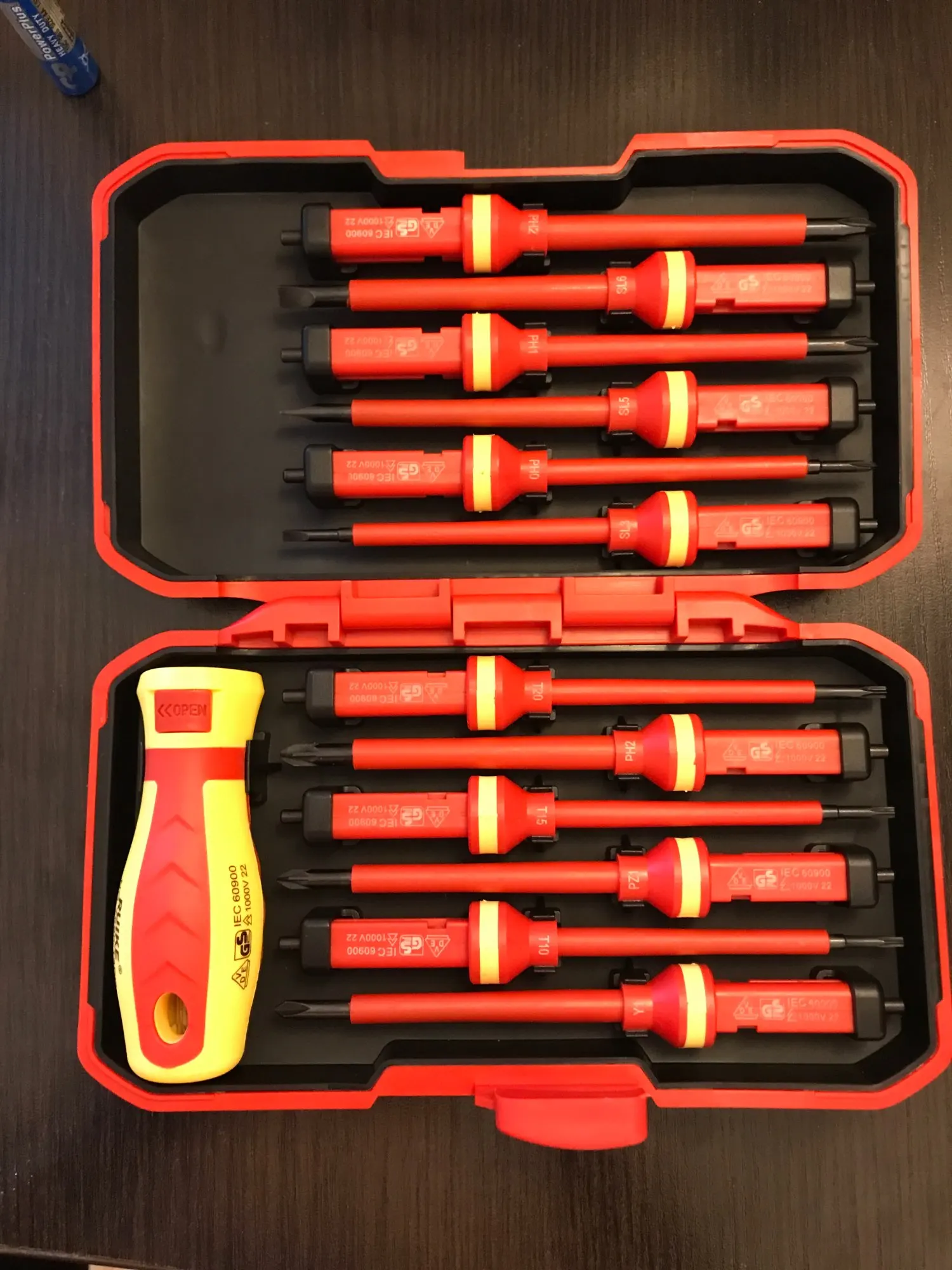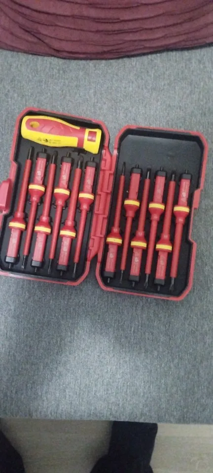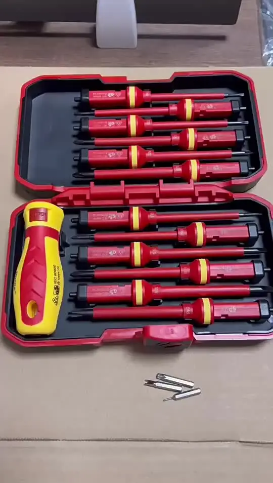 Сменные лезвия: 13 шт. 1000V набор изолированных отверток для электрика CRV включает 11 сменных магнитных лезвий: 4 щелевых; 2 крестообразных; 2 позидрива; 3 торкса. 1 электросонд и 1 съемная ручка.