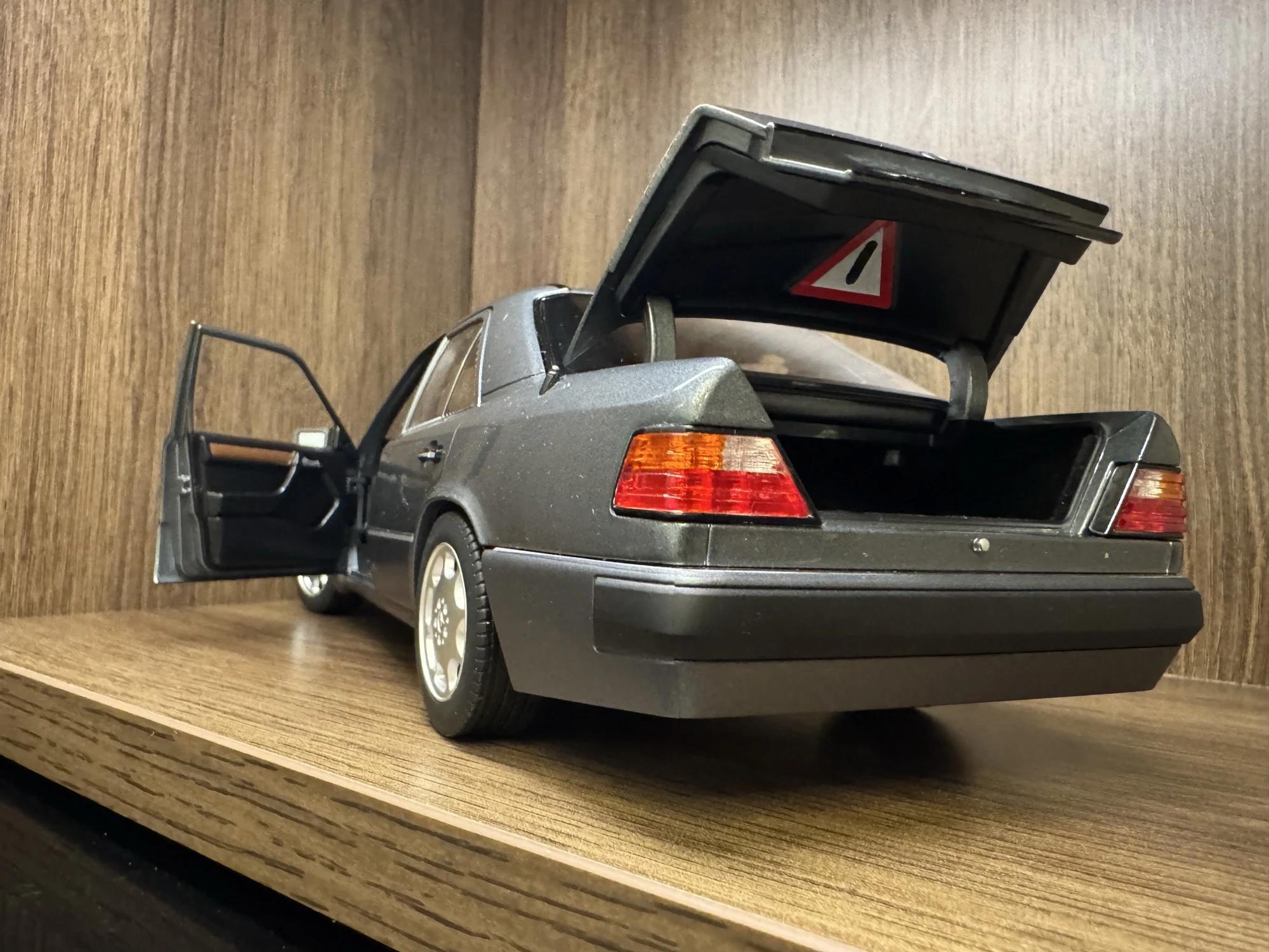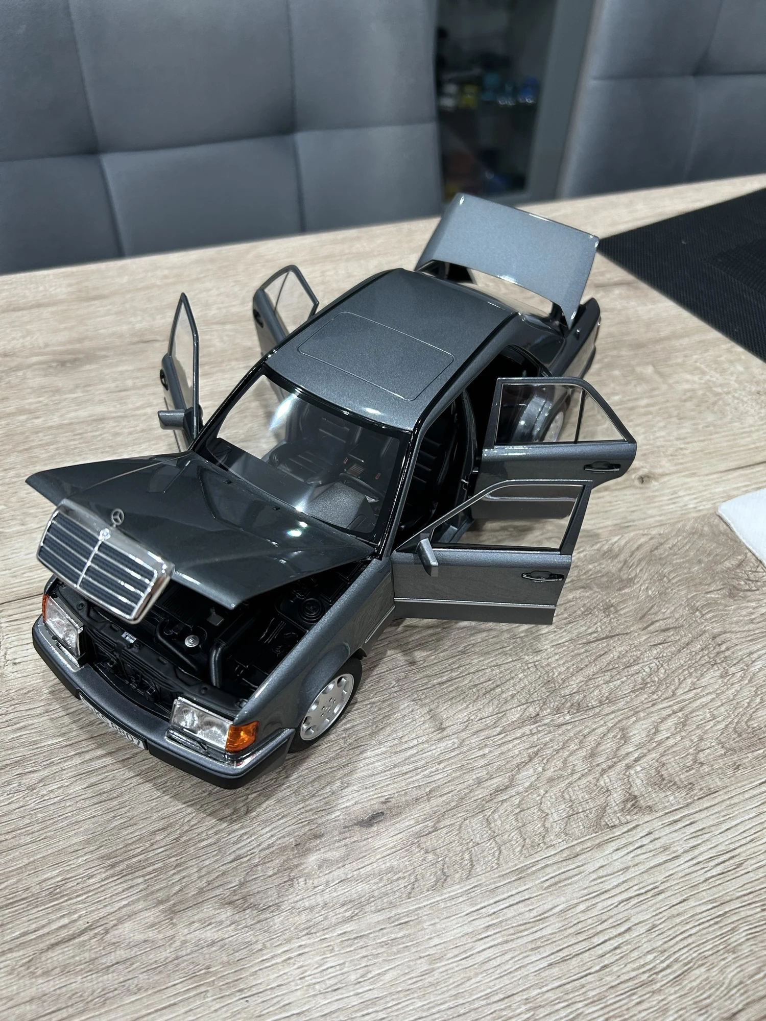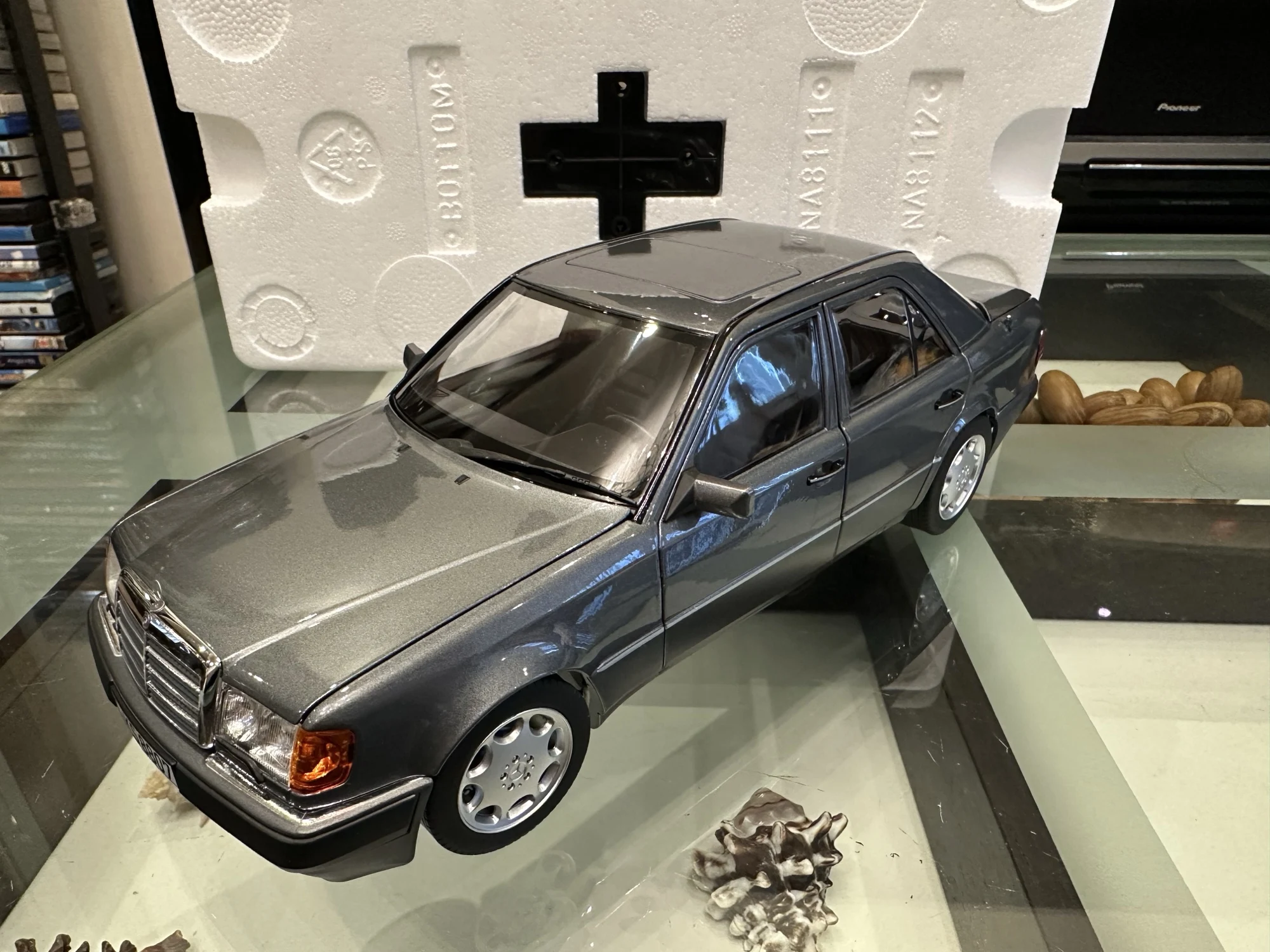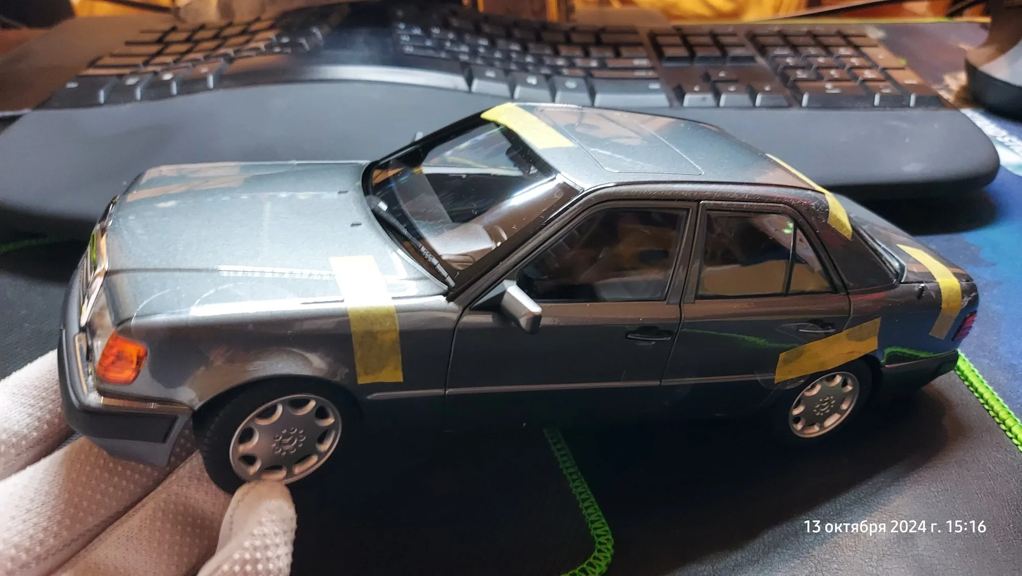 Модель полностью соответствует оригинальной машине. Была такая в детстве у отца. Очень тонкая эмблема мерседес на капоте, нужно быть очень аккуратным! Продавец хорошо упаковал товар. На коробке были защитные углы. В коробке модель была дополнительно зафиксирована лентами.