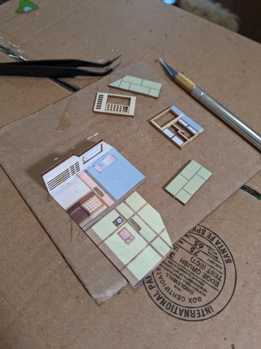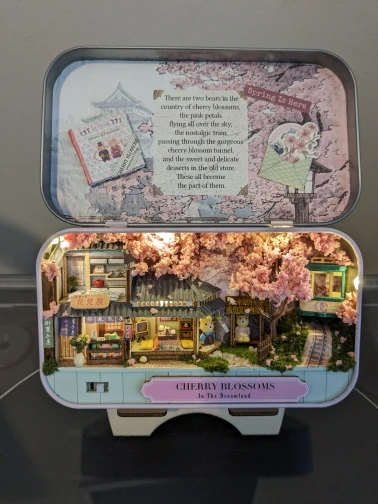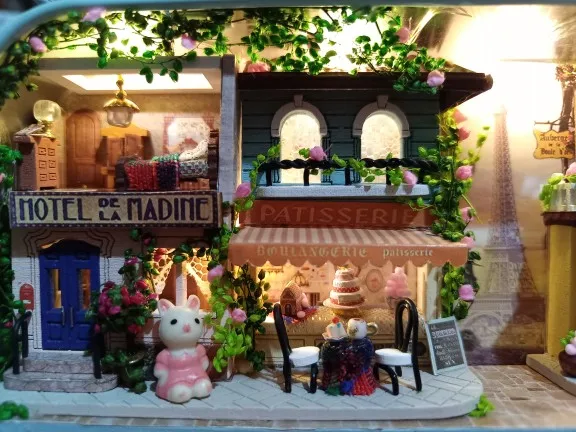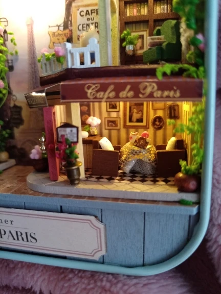 Мне понравилось, очень мило. Я уже купил один (один из парижских), и это заняло у меня гораздо меньше времени, это намного проще, но это того стоит. Я сделал пруд немного больше, окружил его камнями и нарисовал несколько палаток кои, чтобы сделать его более представительным. Я также немного изменил полку спальни и превратил горшок в один с бонсай, я добавил мини-коробку, которую я сделал из материалов, которые я оставил от других проектов, чтобы украсить. Перекрасьте платье Ava в более сиреневый тон. Я обожаю эти диорамы. Также добавьте еще одну полку в магазине десертов, а также банк, но не знаю, что много вижу на фото. Я рекомендую иметь разные типы клея, тонкий пинцет, остроконечные ножницы и точный для резки мелких вещей. Я действительно хочу купить тот, в котором есть старая телефонная будка, я надеюсь, что это мой следующий проект. Кстати, они могут приклеить медведей двусторонним скотчем, чтобы разместить их в разных местах. Развлекательный, красивый.