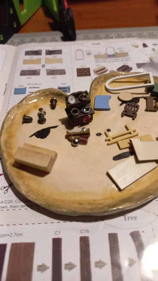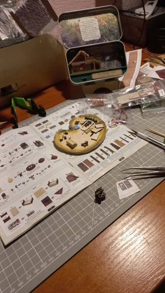 чудовий набір. 11 січня замовила, а 25 вже отримала. якщо виникає питання, брати чи не брати, то одноголосно брати. за 3 вечора я зібрала цю мініатюру, вона чудова. підставка з кроликом трохи була надломана, але це можна клеєєм приклеїти, але я не клеїла, бо там міліпіздрінка маленька, яку непомітно, якщо не дивитися, ахах. чомусь не можу додати фото готової роботи, тому лише процес. інструкція хоч і на англійській, але майже все зрозуміло по картинкам, іноді перекладала щось в гуглі. клею в наборі не було, хоча в інструкції він присутній. використовувала пва, клей пістолет та клей олівець. вирізки краще не ліпити на пва, бо піде все хвилями. дуже багато мілких деталей, мене це не зупинило, завжди хотіла попрацювати з ними, але у самої не було фантазії, щоб створити щось таке. тому пінцет точно треба)