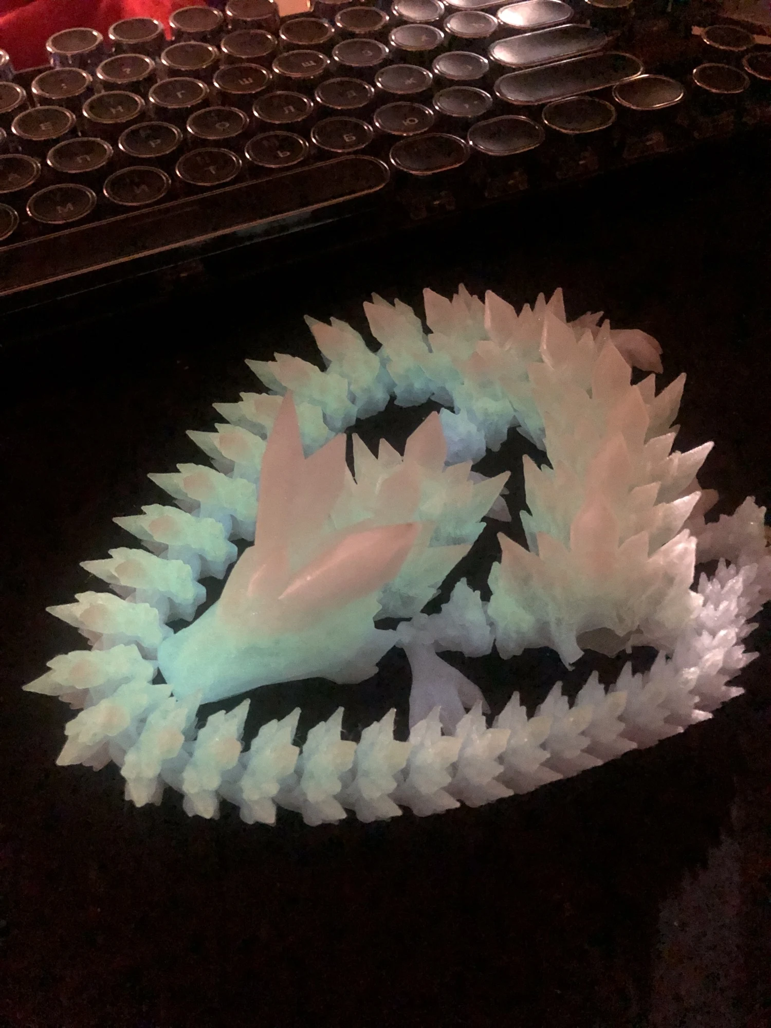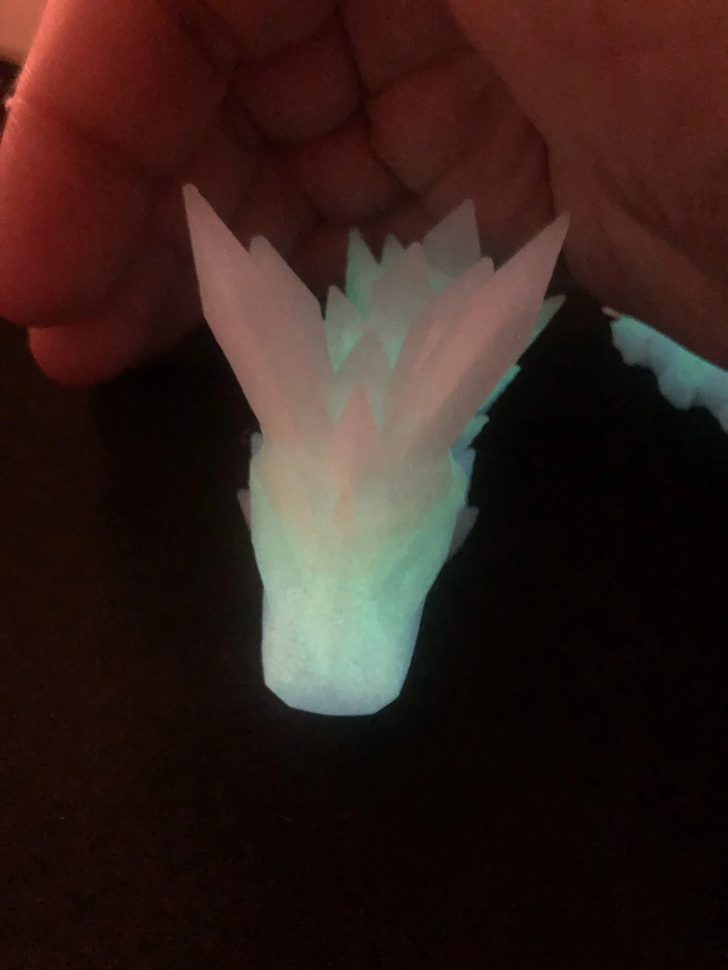 Отлично сделан дракончик ???? Полежал полчаса под обычной лампой,накопил свет,светится в темноте голубым светом.Симпатяга!И упакован был в обычный пакет с пупырышками,ничего не сломалось,весь целый,маленький и изящный ???? Спасибо продавцу ????