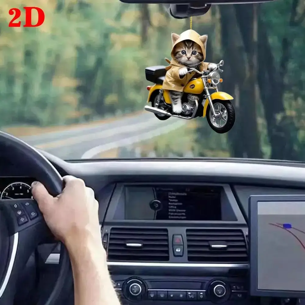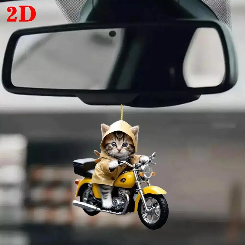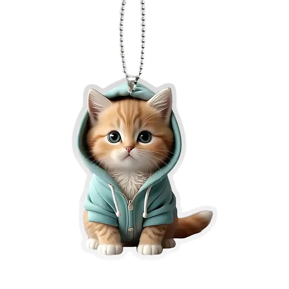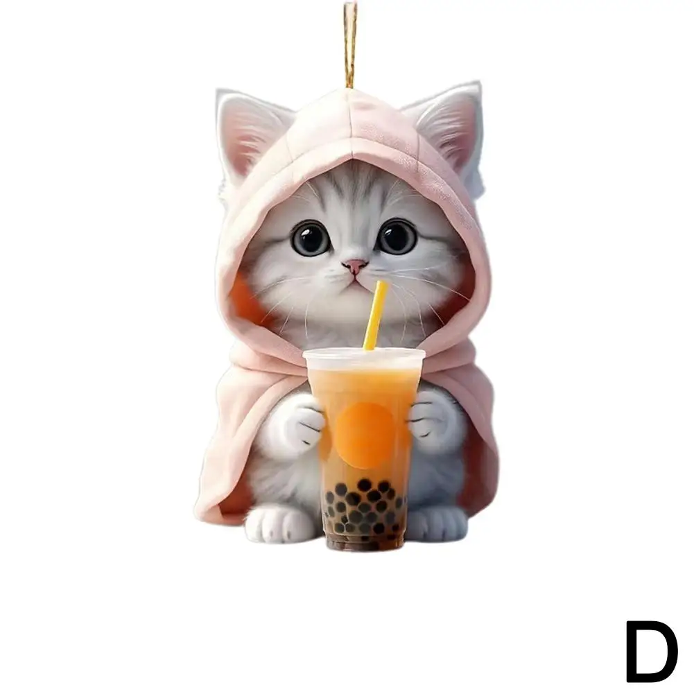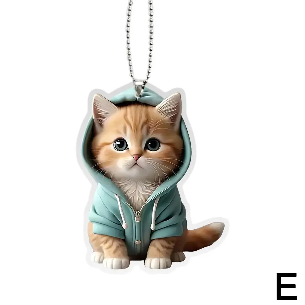Автомобильный подвесной кулон, украшение для зеркала заднего вида, компактный 2D акриловый подвесной орнамент в форме кошки, милые кошки, декор интерьера автомобиля