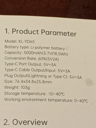 Швидко доставили. По якості - приємні матеріали і зручне виконання. Із недоліків - шнурок важко "виколупати" з фактора - треба мати довгі нігті ) чи чимось "підковирнути". Ємність тестував струмом 1,5 А напруга 5 В. На розряджання віддав 2900мАг (14,6Вт. год). На заряджання (струм 3А) "всмоктав" 3790мАг (19,2Вт. год). Десь близько до того що заявлено - 5000мАг *0.6(conversion rate) = 3000мАг Видає тільки 5В (в інструкції також це описано). В цілому виріб сподобався - стильний і невеликий, як раз що треба для "останньої надії" )))Natali S. 22 февраля 2025