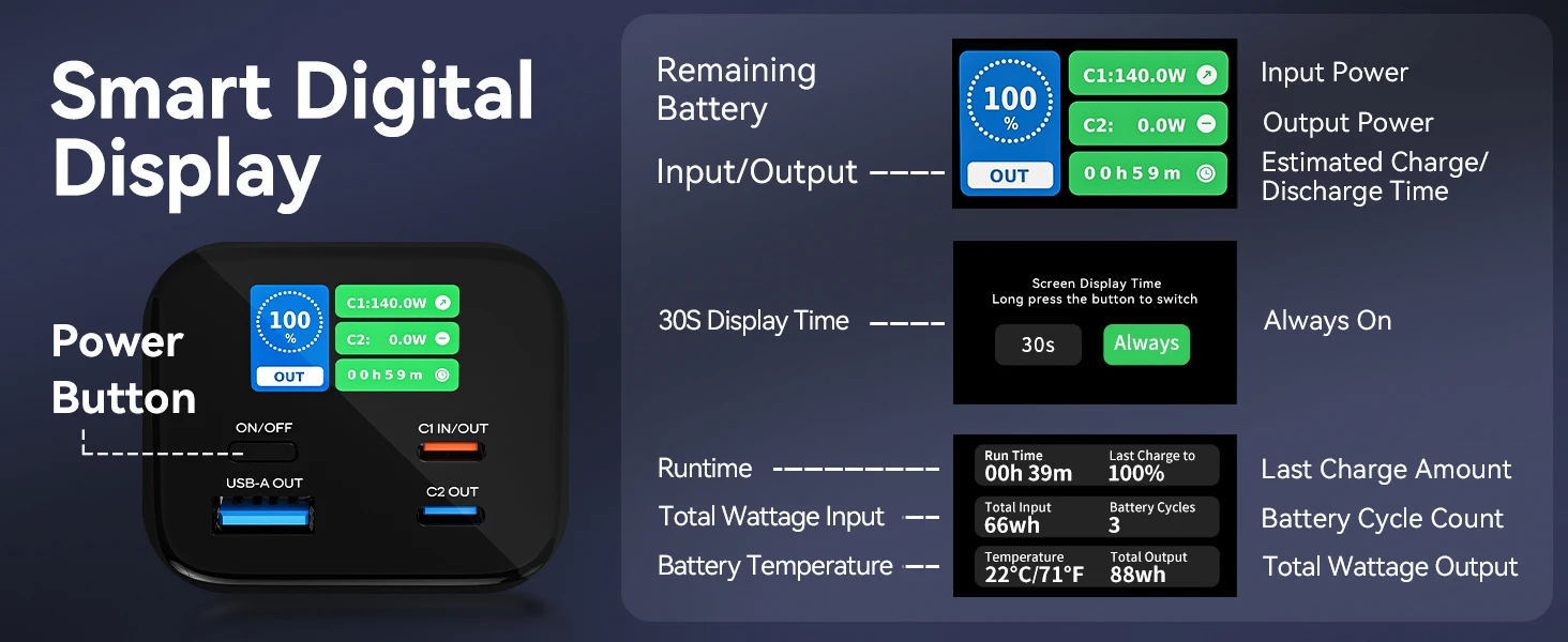 Цифровой дисплей Power Bank мощностью 140 Вт