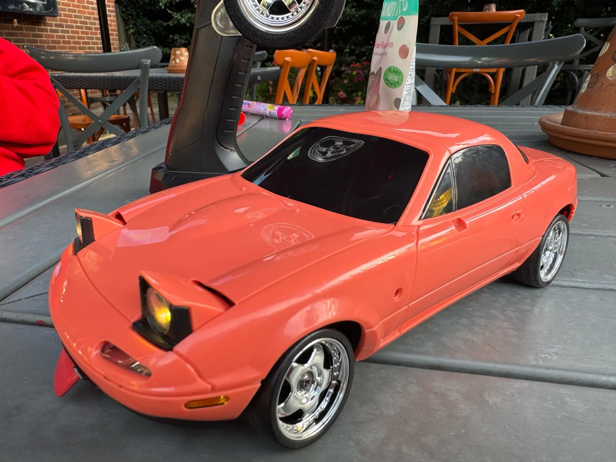 Мой паренек и я очень впечатлены. Это Mazda Miata, он действительно хорошо дрейфует, это очень весело. Всплывающие передние фары, задние указатели поворота, лампочки и фонари заднего хода, подвеска. Приятное качество сборки и довольно много аксессуаров для автомобиля, боковые зеркала и т. д., что добавляет немного времени склеиванию. Рекомендовал бы.Gregory A. 11 сентября 2024