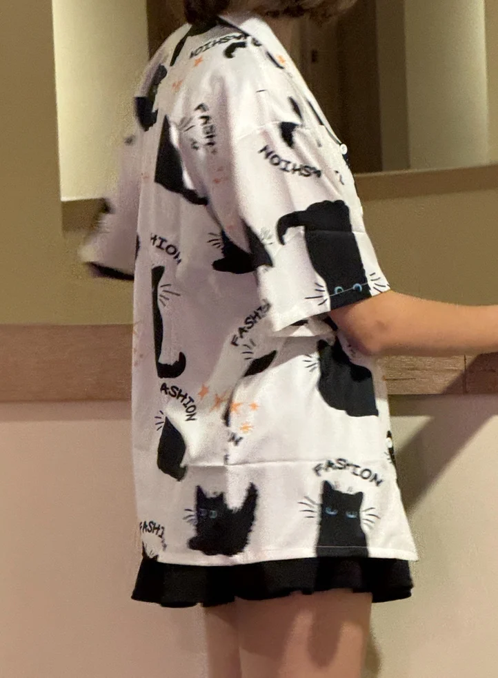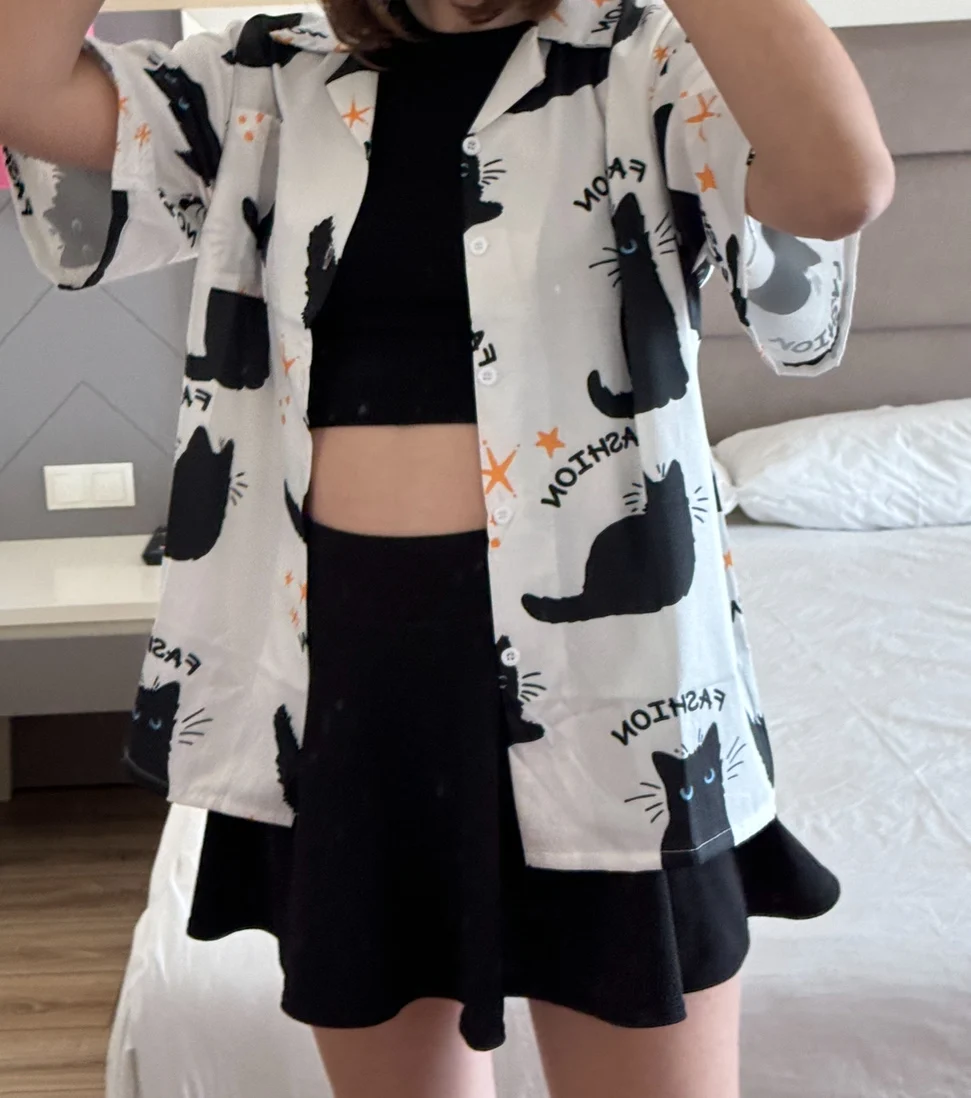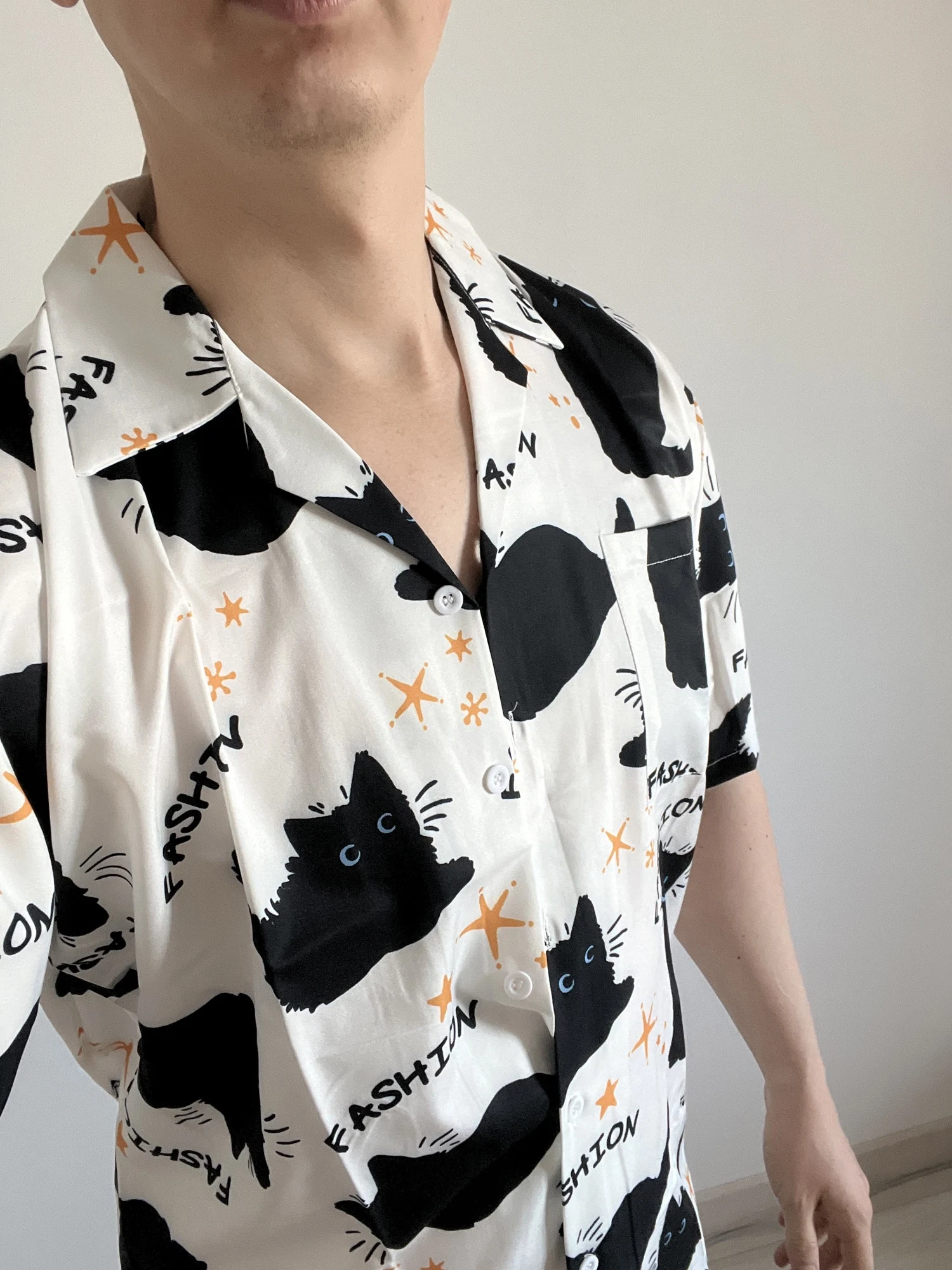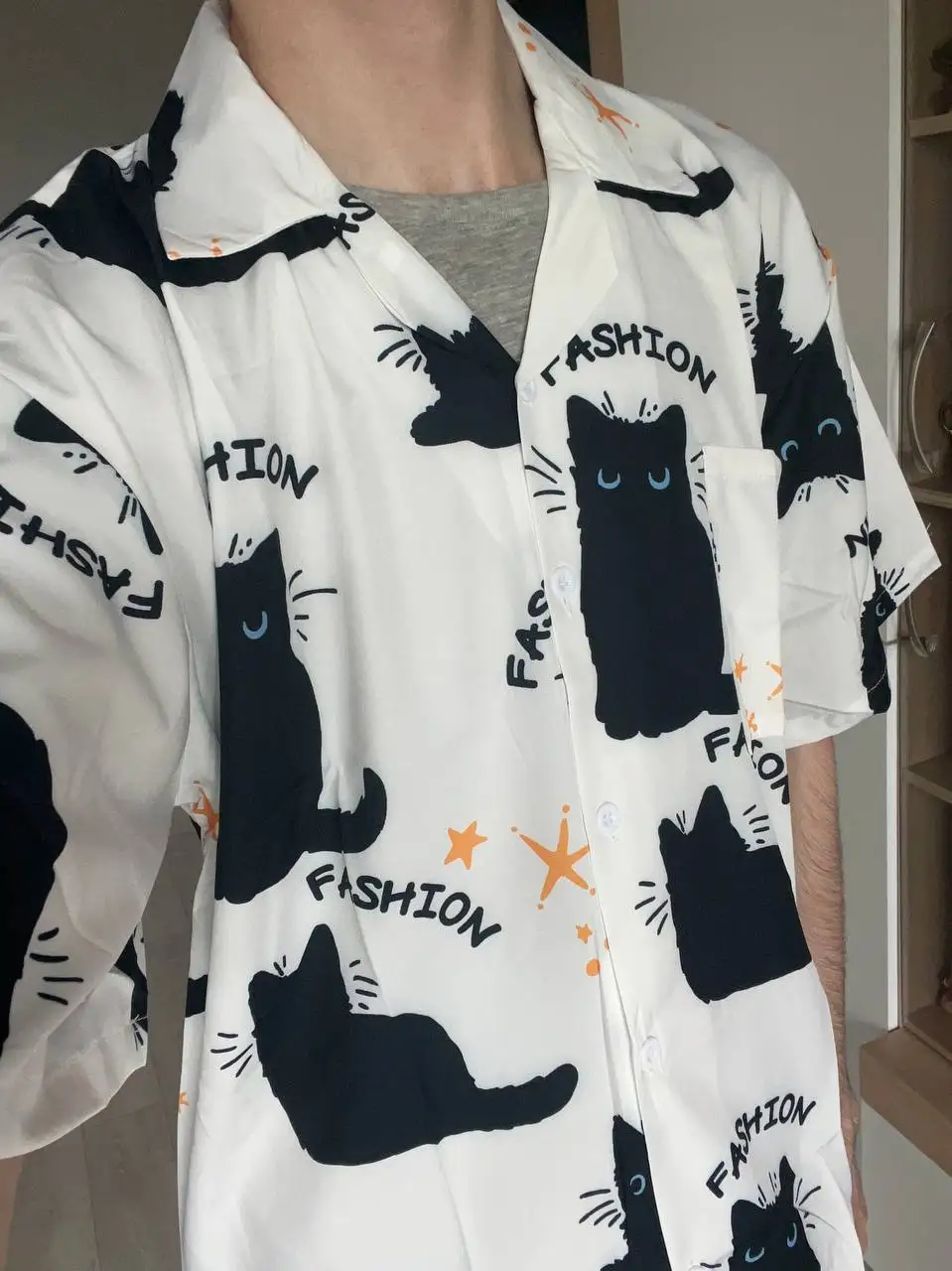 заказывал на лето. ОЧЕНЬ лёгкая ткань, принт качественный и это КОТИКИ АААААААА. Это идеально. Размер тоже отличный. А ещё рубашка была упакована в такой пакет, это круто И отдельное, за что я бы поставил шестую звезду - доставка в 12 дней