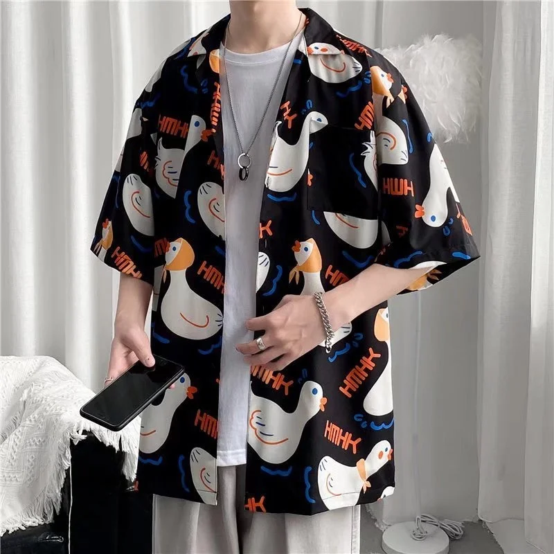 Рубашка огонь! Взяла размер XL на российскую М. Качество синтетика, но, картинка яркая. Гуси - топ! Рекомендую.