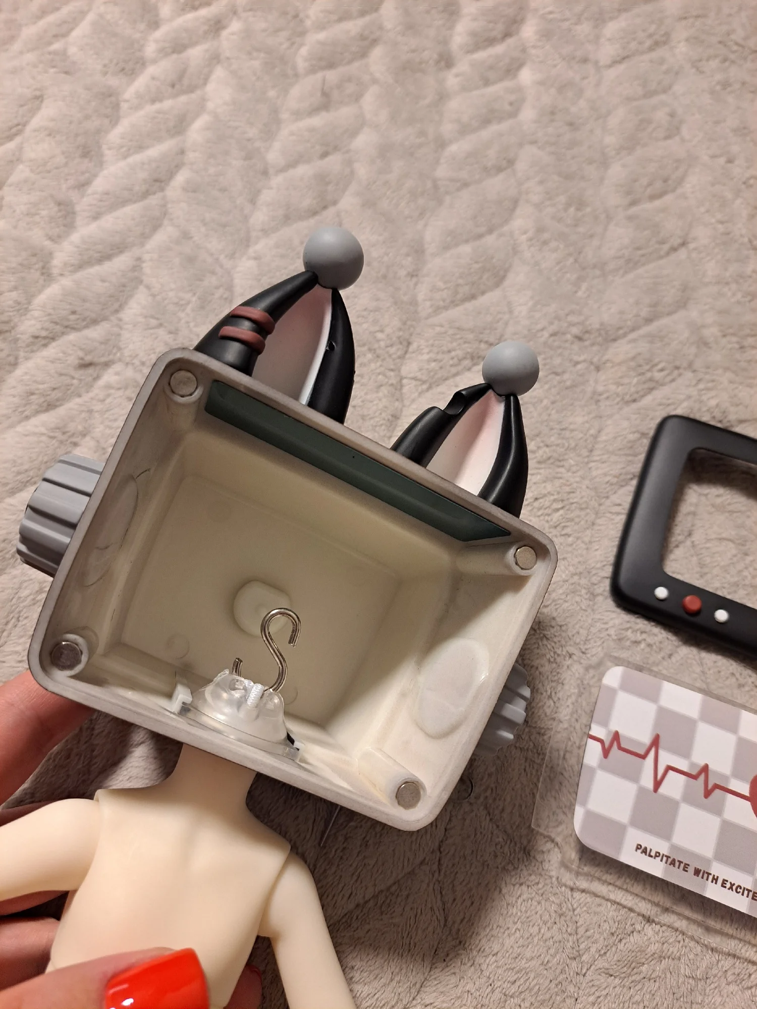 Куклу нужно снова натяать и замшить, но она относительно хорошо держит позы даже прямо из коробки. Лишний пустой экран отсутствует. Коробка была немного потрепана местами, но сама кукла не повреждена благодаря пластиковому ящику, в который она была.