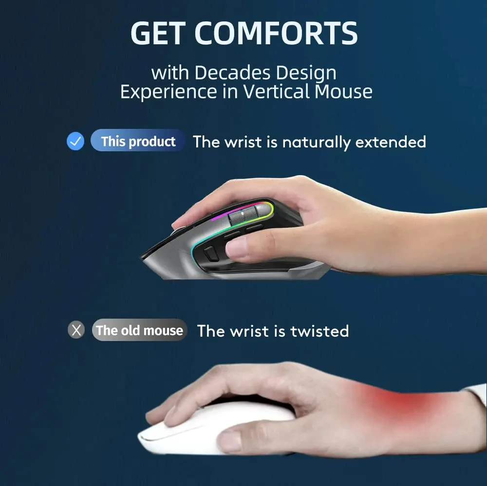 [Эргономичная беспроводная мышь] Эта эргономичная мышь помогает более естественно выдвигать запястье, а не скручивать. Кроме того, удобная форма и интуитивно понятные элементы управления работают комфортно с идеально скульптурной формой и идеально расположенным колесиком и элементами управления