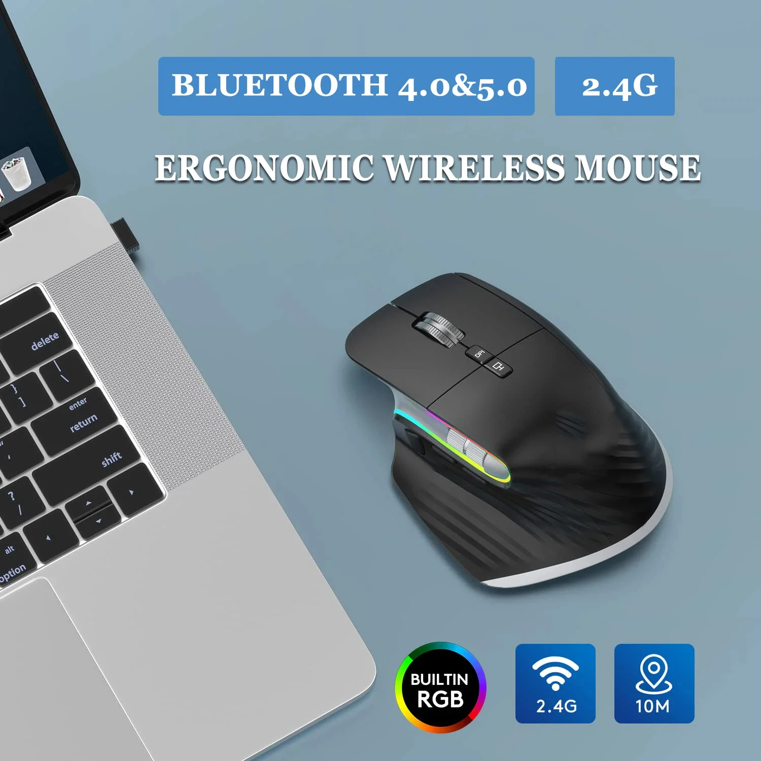 Беспроводная игровая мышь Bluetooth 2,4G мышь без звука эргономичная USB-C RGB перезаряжаемая Кнопка 5DPI 9 для портативных ПК, планшетов Macbook