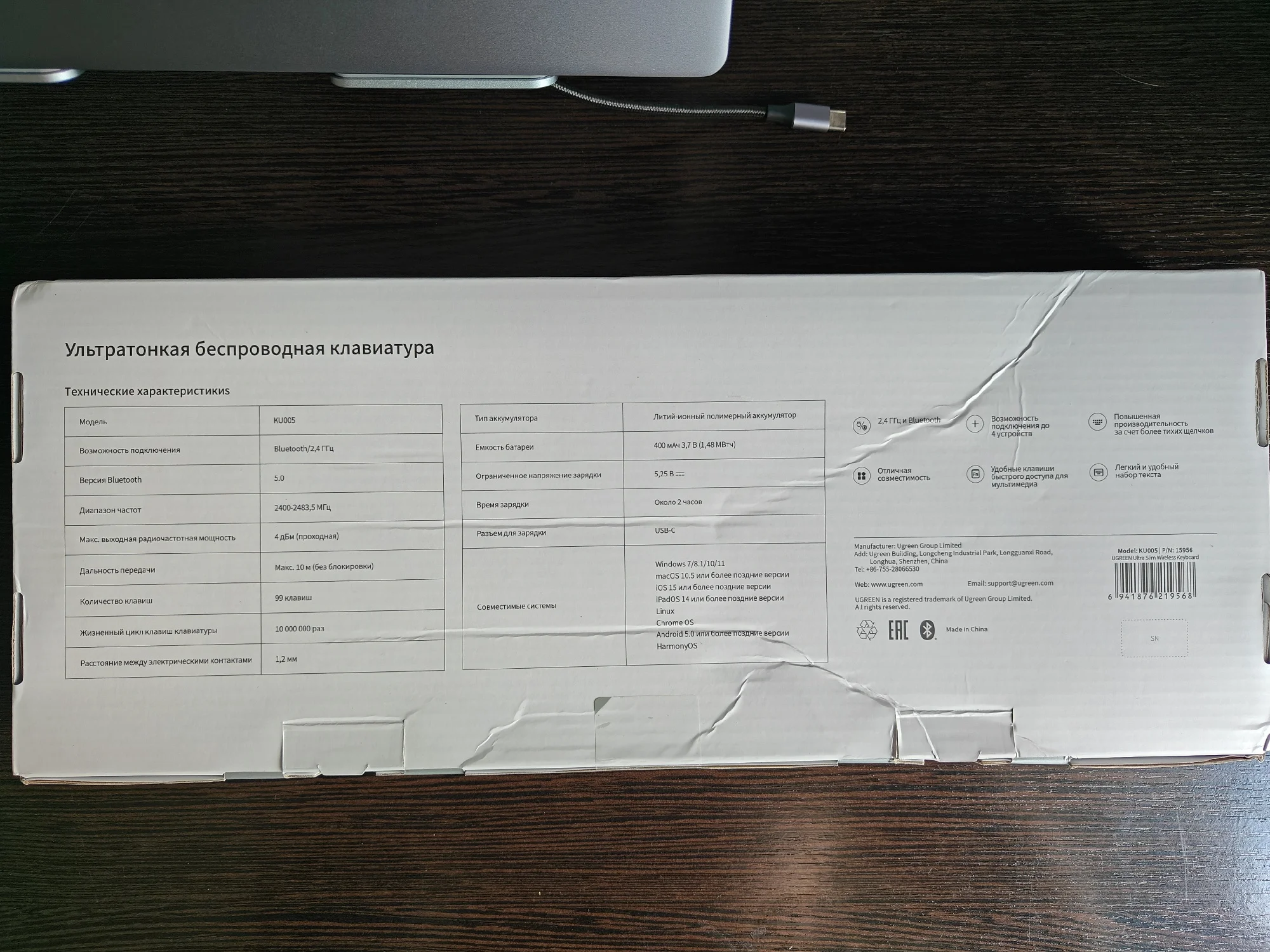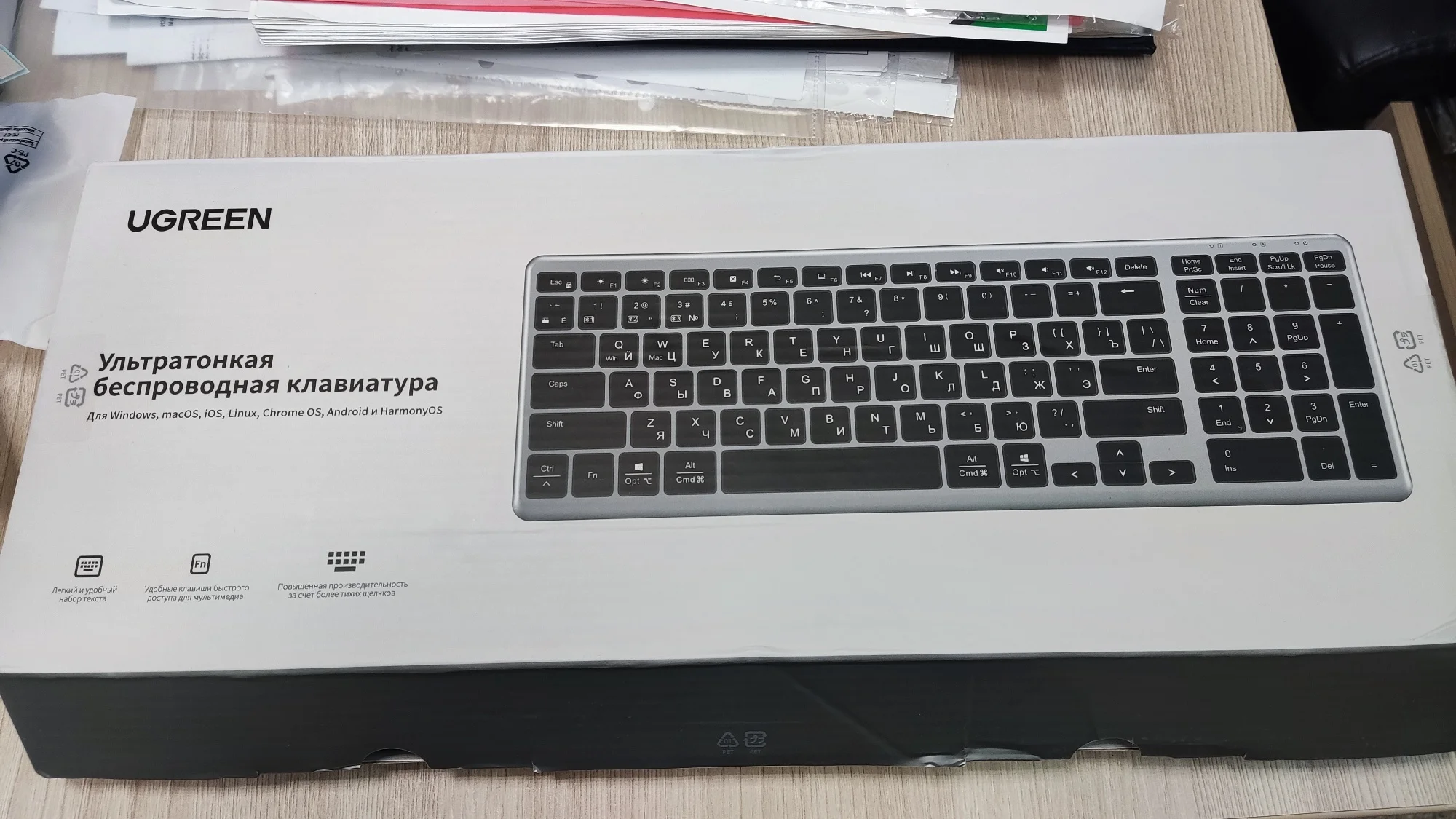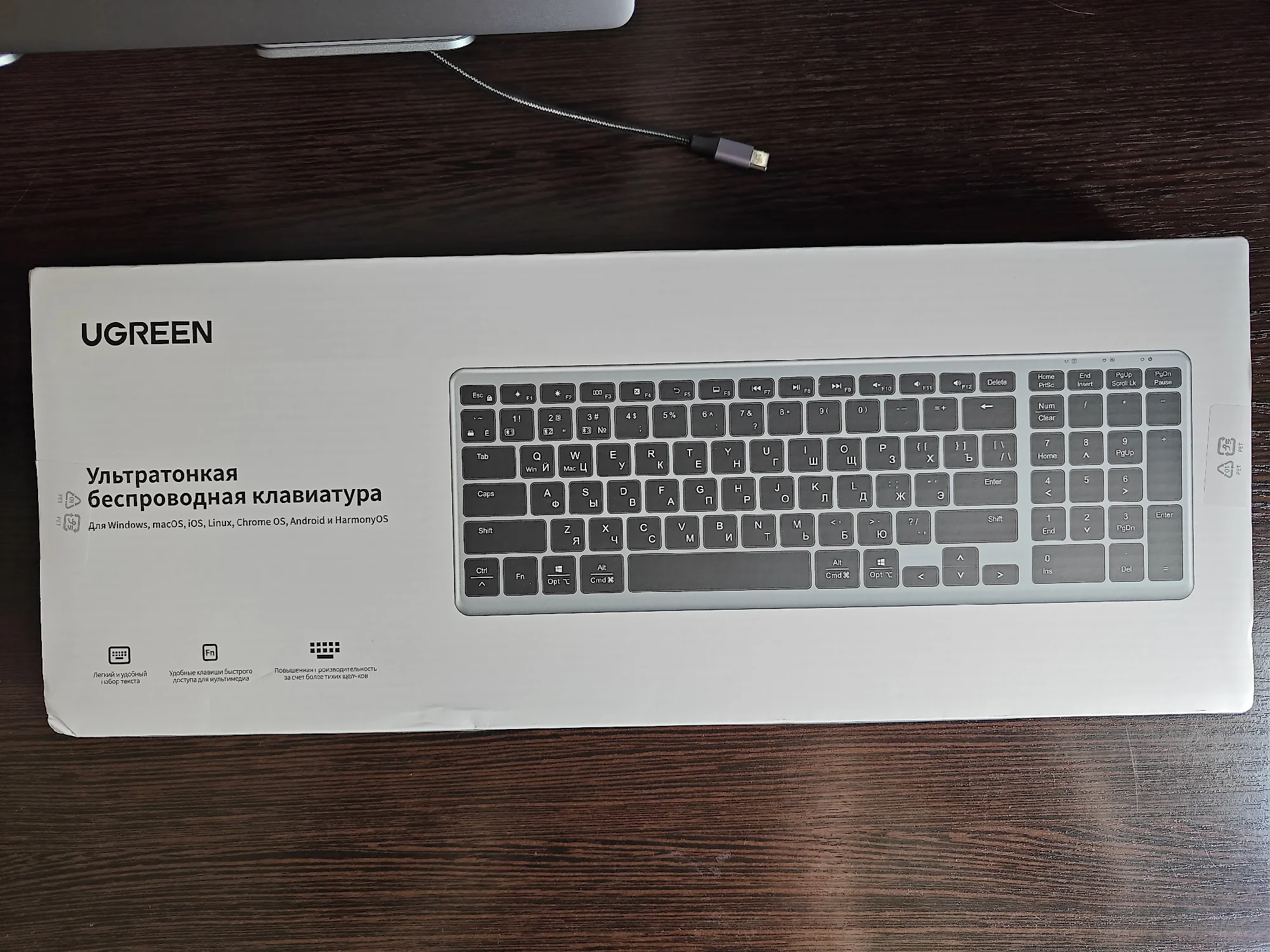 Ugreen, лучшая цена качество всех товаров👍 клавиатура отличная, мягкий ход клавиш, тонкая, эстетически строгая. Все как я люблю!) Было упаковано на совесть, ничего не помято, не сломано. По блютузу законектилась сразу, есть возможность подключить через 2,4. источник питания встроенный, очень практичное решение.