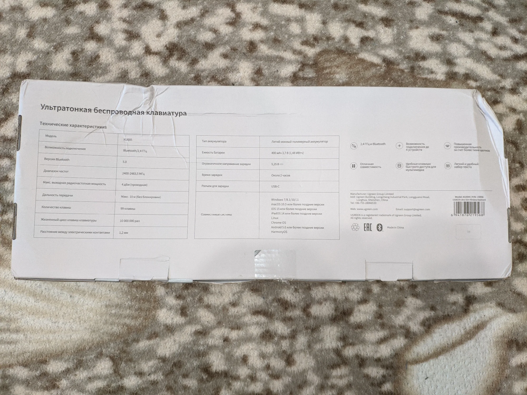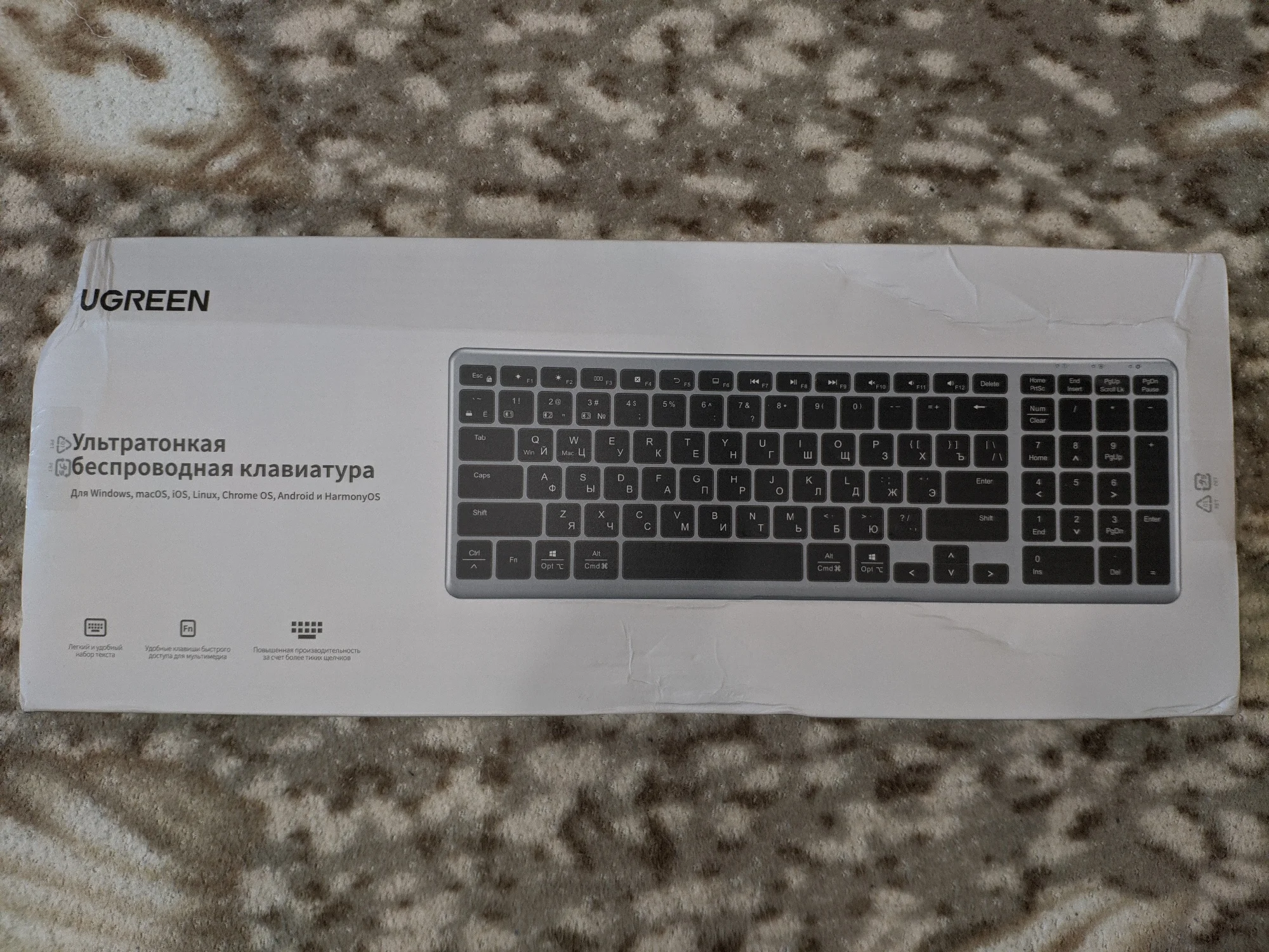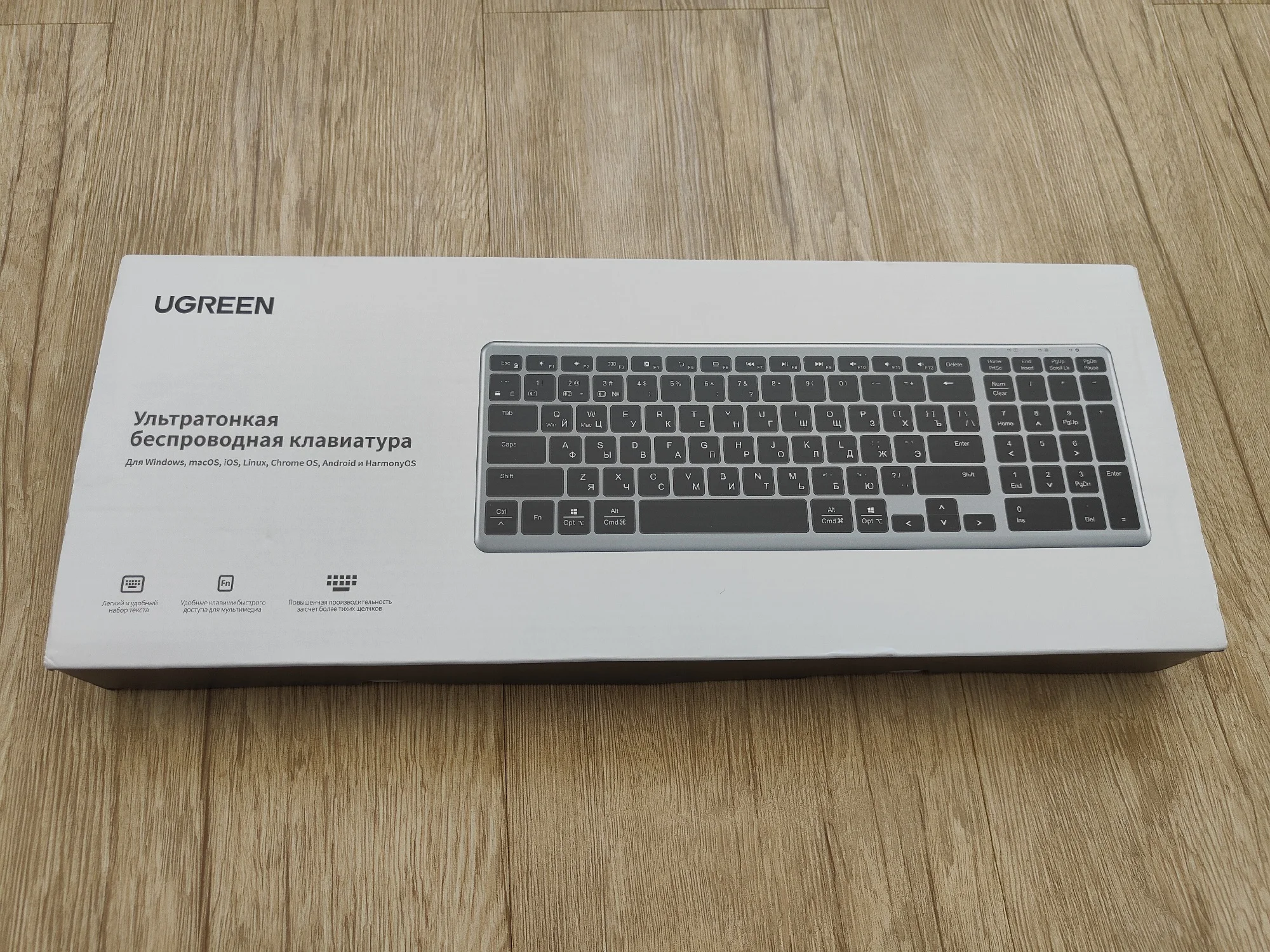 Ugreen, лучшая цена качество всех товаров👍 клавиатура отличная, мягкий ход клавиш, тонкая, эстетически строгая. Все как я люблю!) Было упаковано на совесть, ничего не помято, не сломано. По блютузу законектилась сразу, есть возможность подключить через 2,4. источник питания встроенный, очень практичное решение.