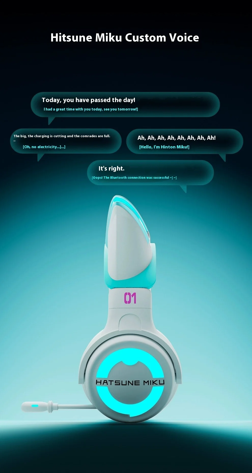 Проводные наушники Hatsune Miku с Bluetooth и кошачьими ушками