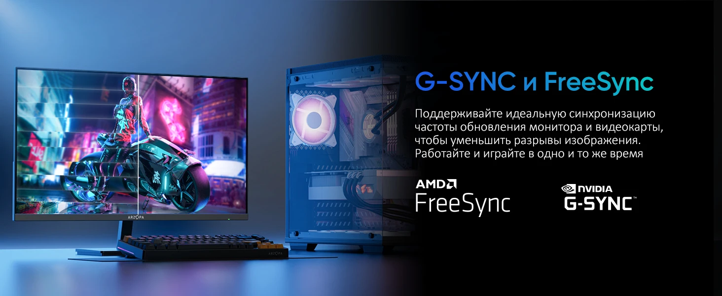 Совместимость с AMD FreeSync™ и NVIDIA G-SYNC™ Синхронизирует частоту обновления монитора с графическим процессором, гарантируя бездростную и безрубезгуюемую игру.