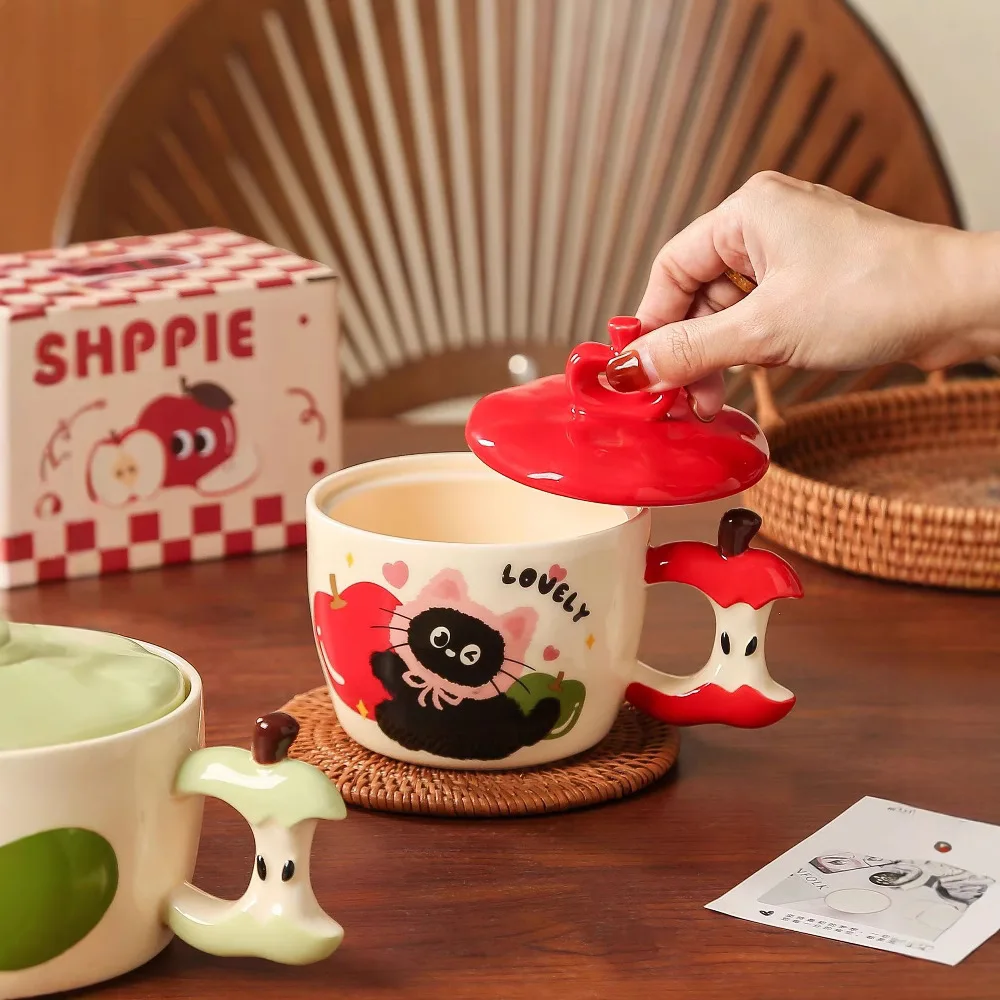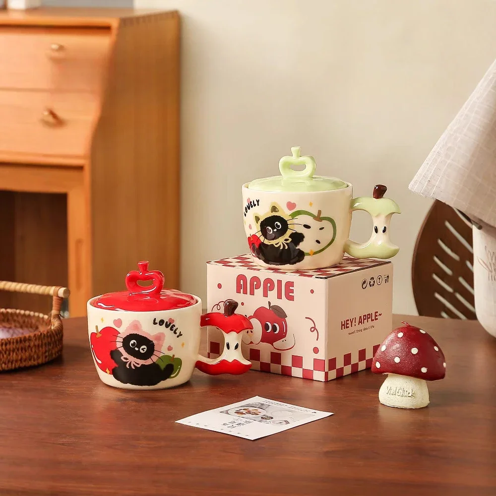Креативная керамическая кружка Apple Cat, кофейные кружки с капюшоном High Beauty, чашка для молока для завтрака, чашки для воды для пары, подарок на день рождения, кавайная чашка