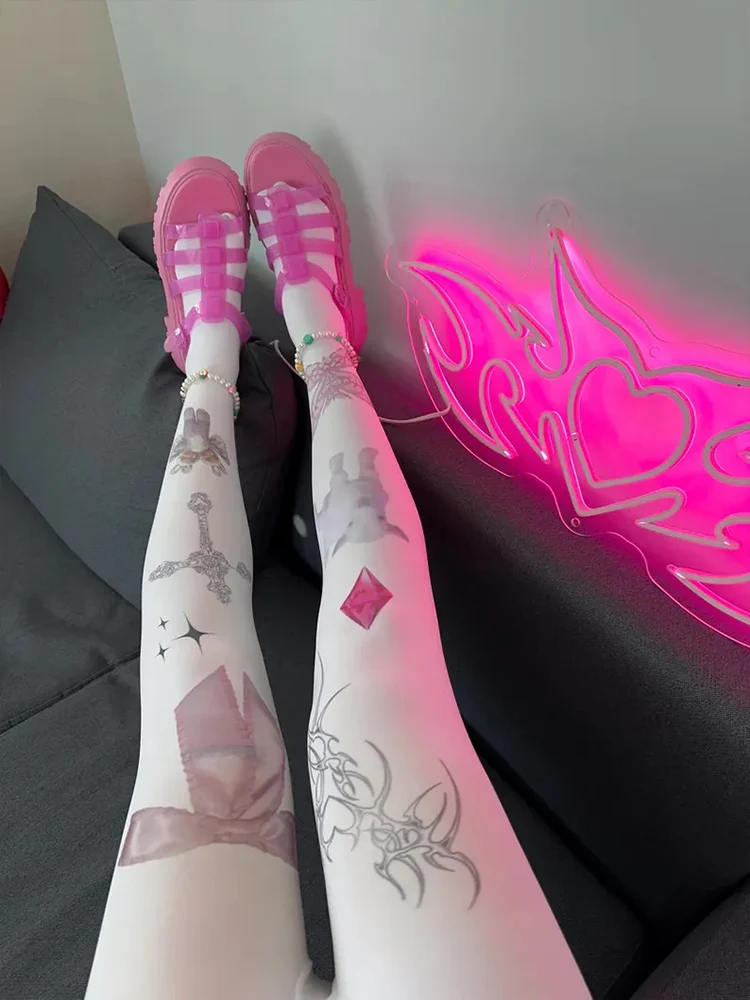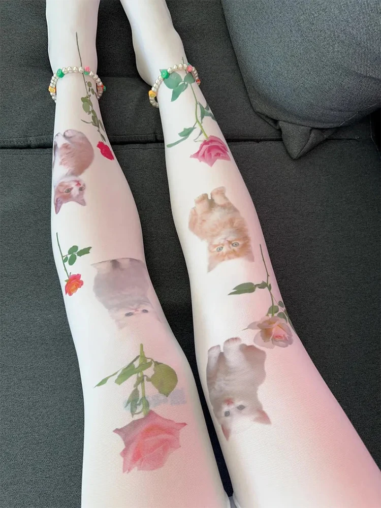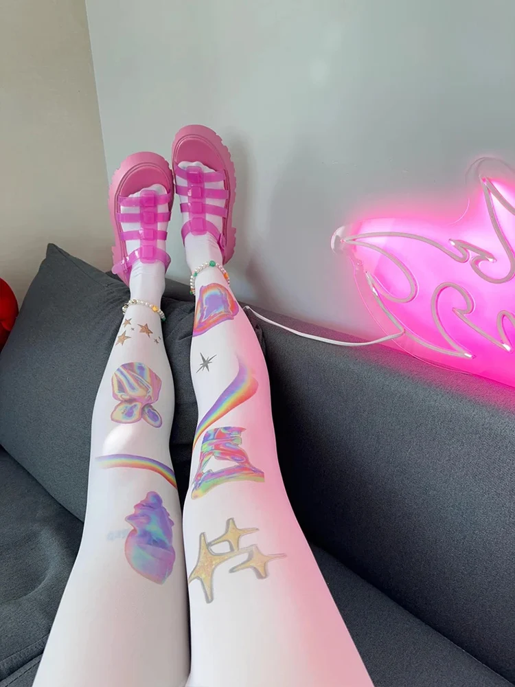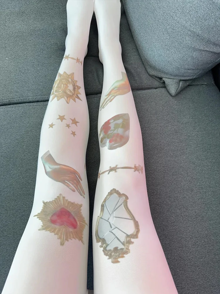 Женские длинные колготки в стиле Харадзюку с принтом в ассортименте