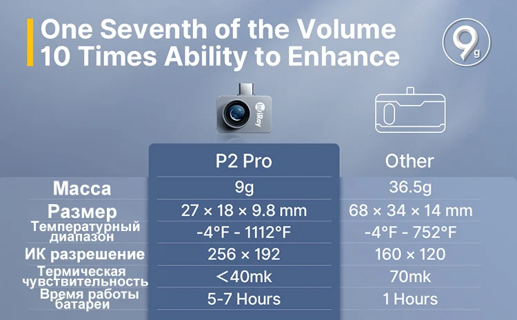 InfiRay P2 Pro термодатчик для Android и iPhone 256*192