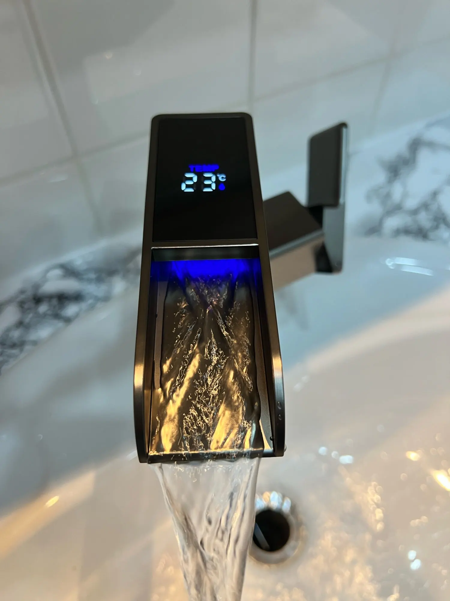 Изделие неплохое, основание крана металлическое, только верхняя часть пластиковая. Освещение и температура работают, но бывают случаи, когда при включении крана издает редкий шум в 1/2/3 секунды, пока не начнет загораться и не покажет температуру. Еще одним негативным аспектом является то, что если вы посмотрите на последнюю фотографию, вы увидите, что вода остается в кране и высыхает, оставляя белый след хлора, который я представляю... И вы должны чистить его каждое утро. Остальное хорошо