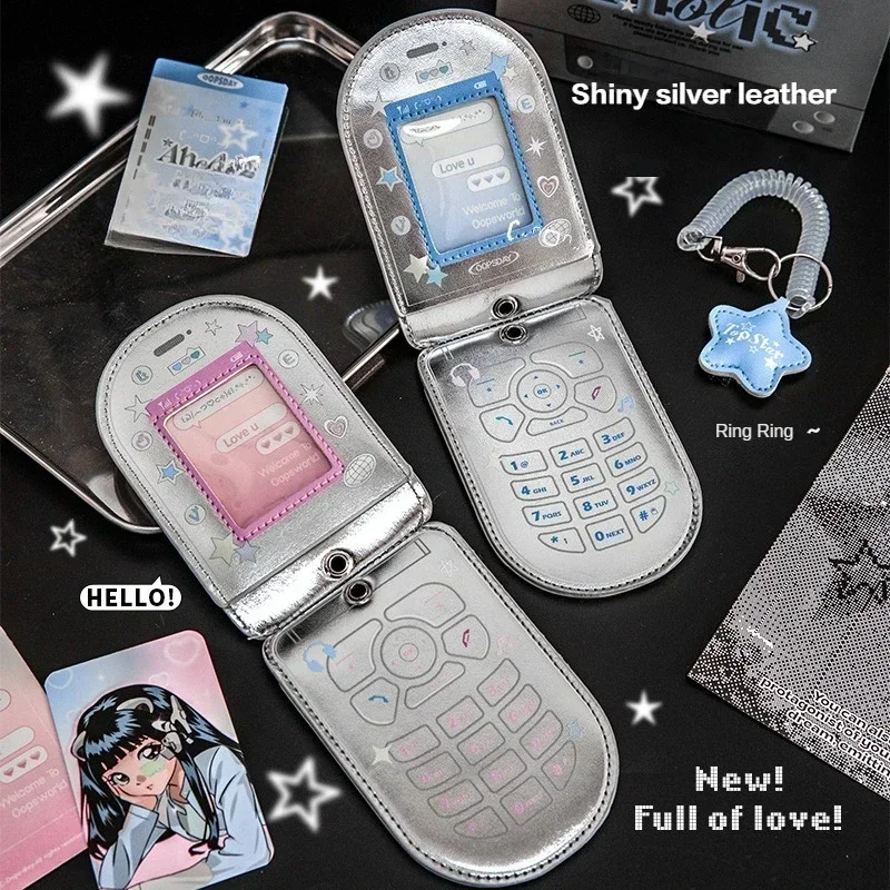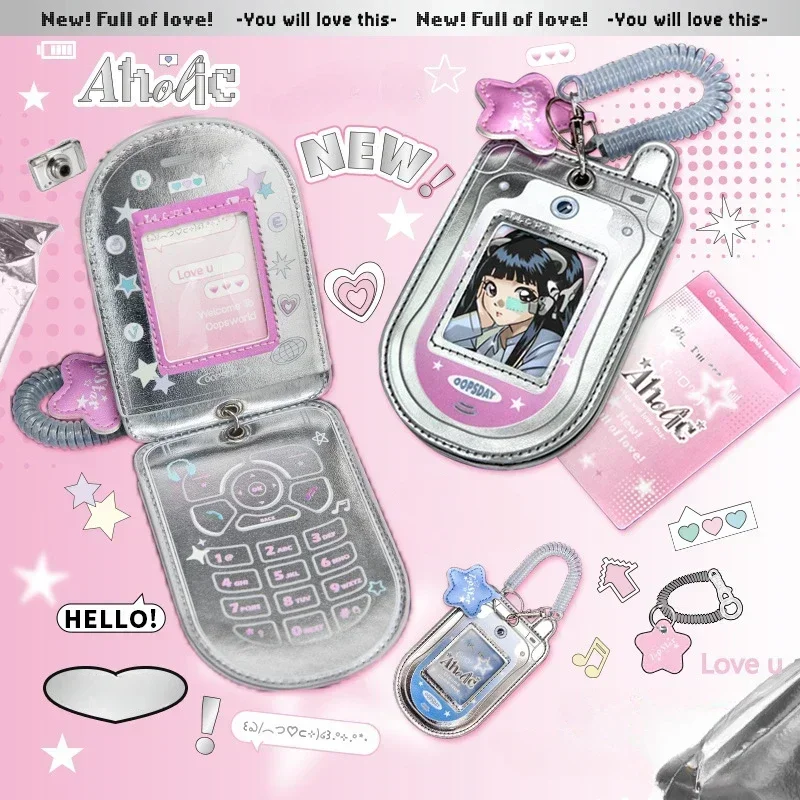 Kawaii искусственная кожа форма мобильного телефона 3 дюйма держатель для фотокарт держатель для карт фотография сумка Подвеска флип-телефон искусственная кожа школьные канцелярские принадлежности
