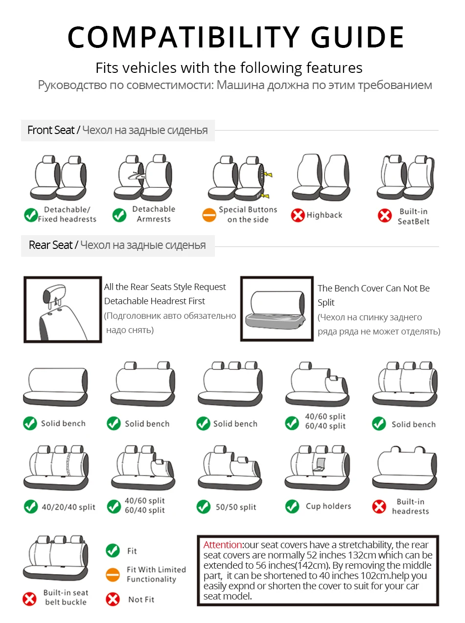 Совместимые автомобили : Чехол подходит для всех стандартных автомобильных сидений