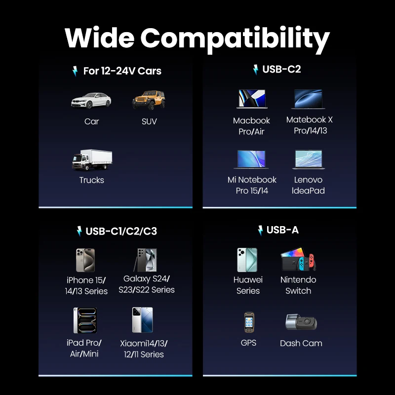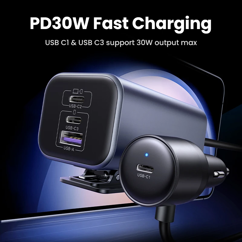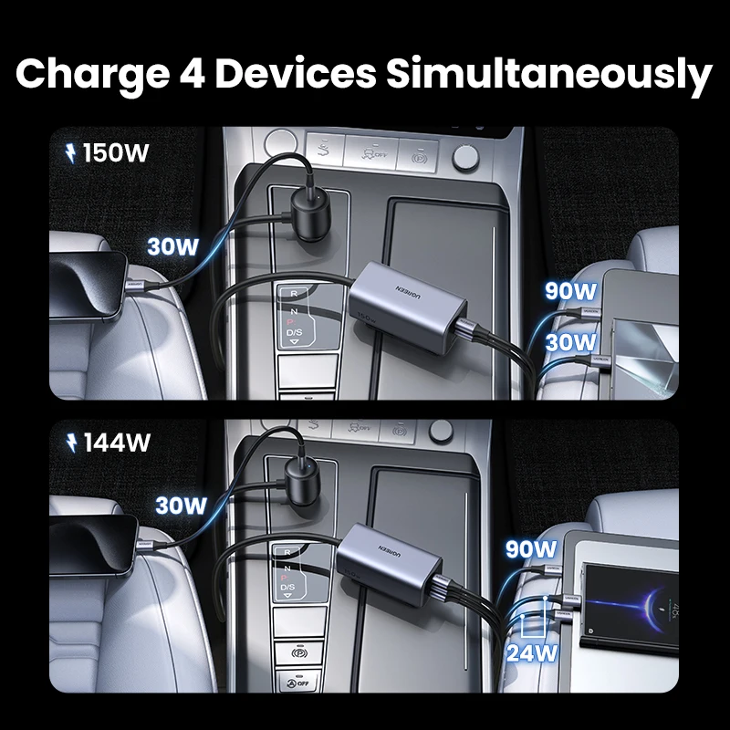 UGREEN Автомобильное зарядное устройство 150 Вт Удлинитель быстрой зарядки 4 USB-устройства Зарядное устройство GaN для iPhone 16 15 Зарядное устройство USB C для iPad Ноутбук