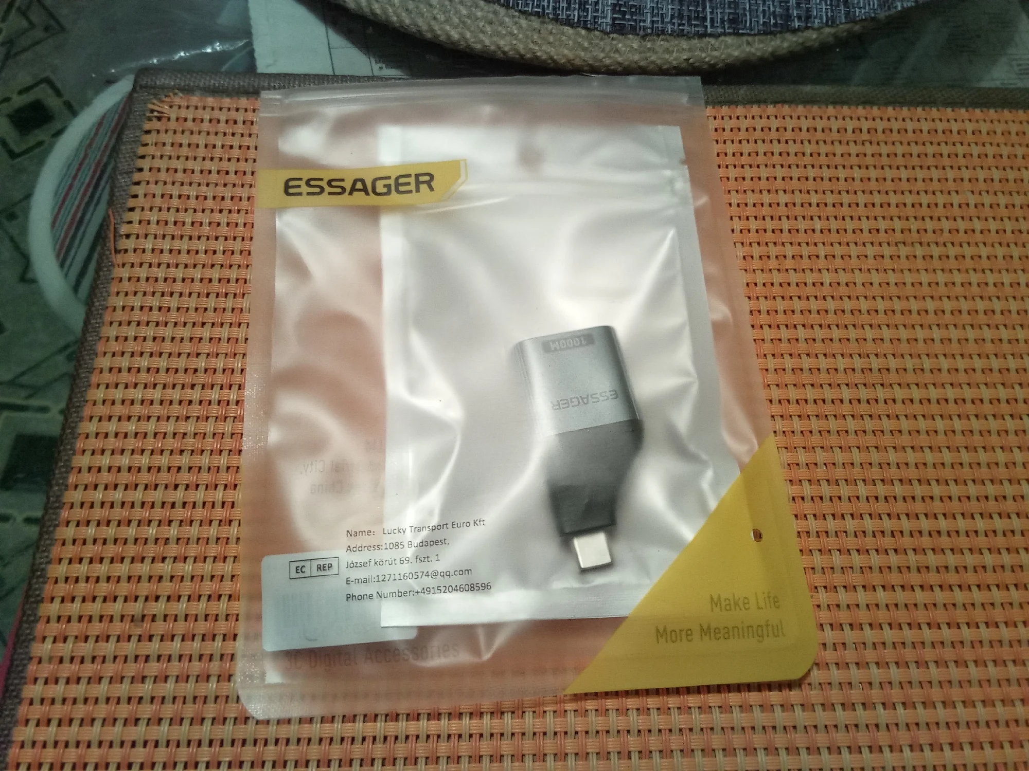Essager ES-OTG22 адаптер Type-C к Ethernet серого цвета