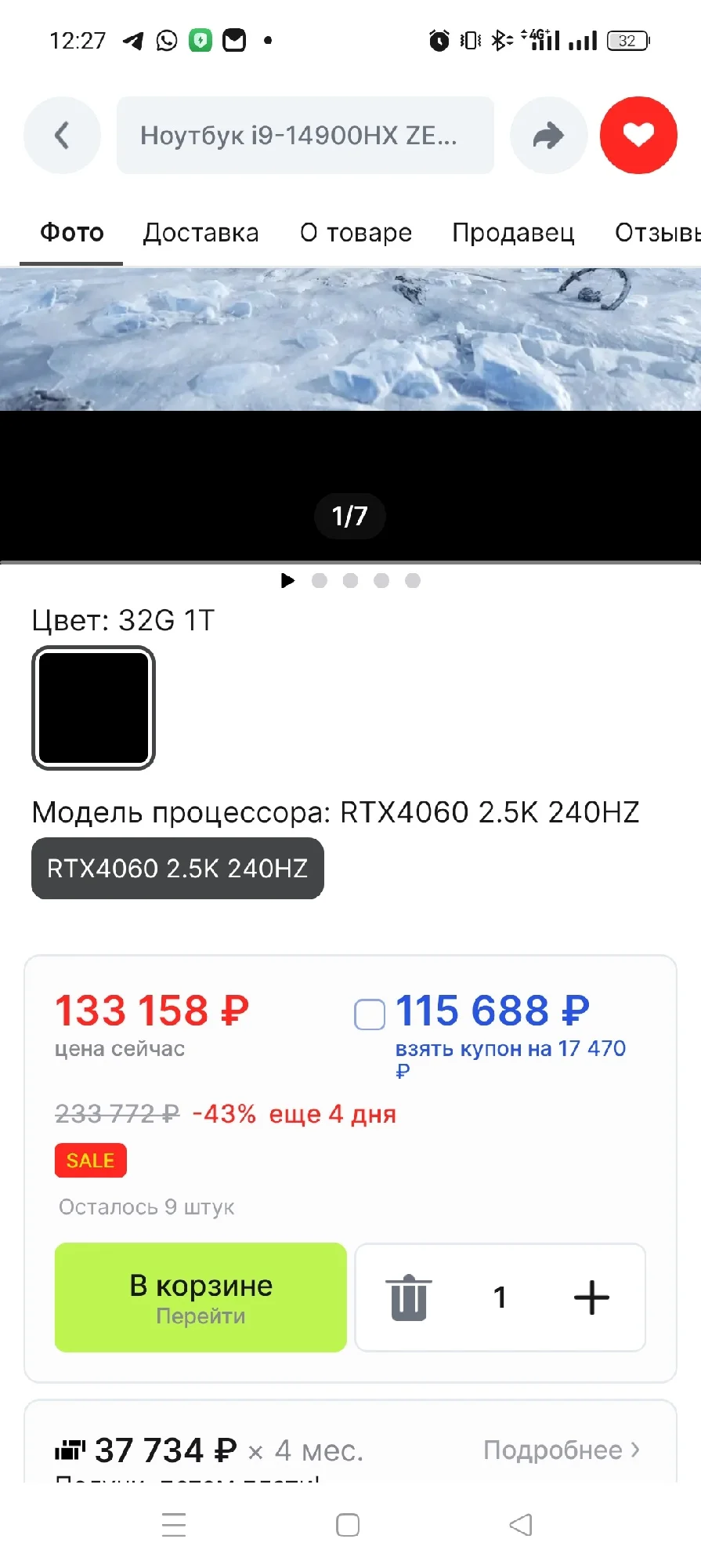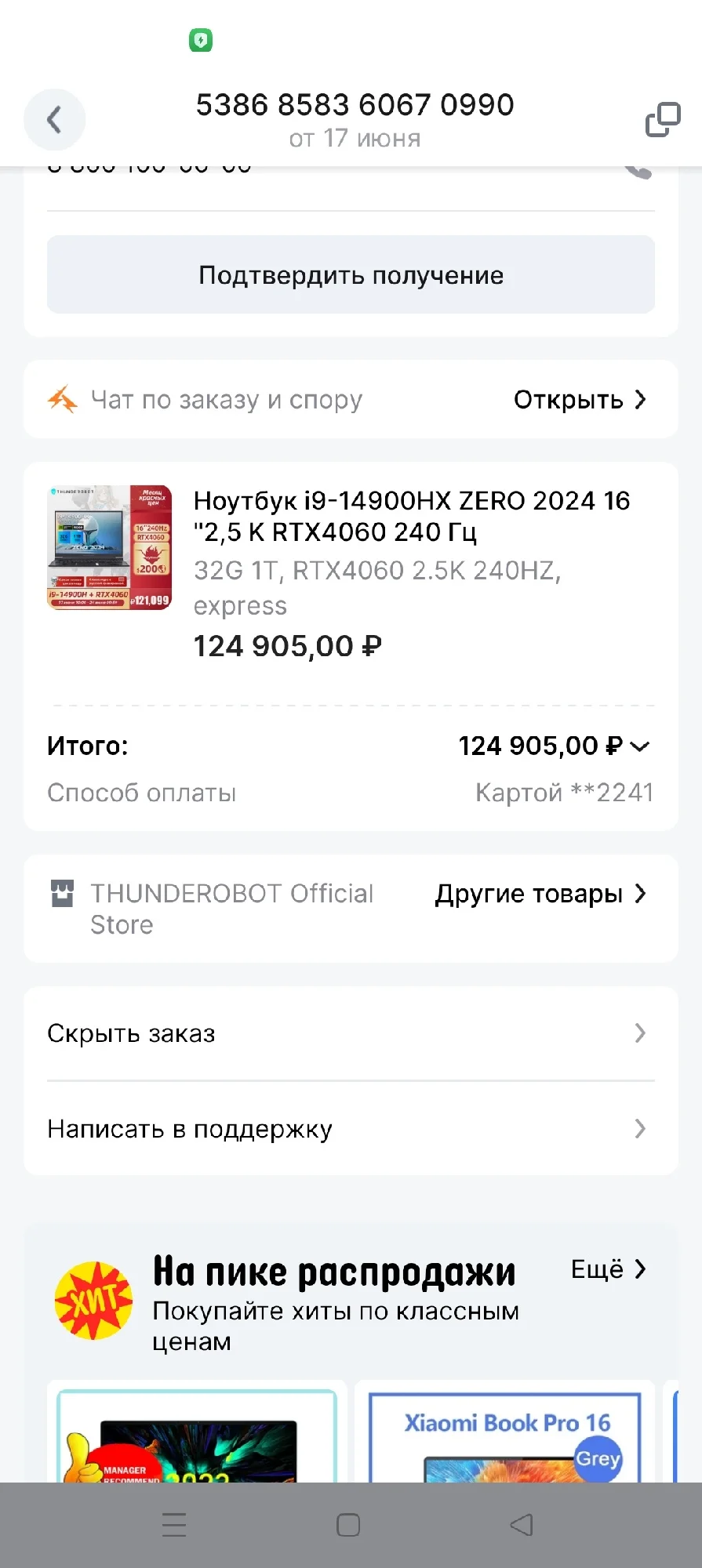 Заказал 17 июня, в начале распродажи, забрал 20 июня. Доставка быстрая, продавец отправил в тот же день. Обидно конечно что заказывал за 125к, а через день цена опускалась до 114к (скрин сделал когда цена поползла вверх) мог бы 11к сэкономить. Обидно. По ноуту... все соответствует заявленным характеристикам. Выглядит классно, экран качественный. Порадовало что SSD на 1ТБ одной планкой, можно еще вторую докинуть. Но, уточнял у продавца, в этом случае слетаешь с гарантии. Пока не запускаешь ничего тяжелого, работает тихо. Как только запускаешь игру, тут конечно дует нехило, шумноват. Но это все же ноут. До этого были обычные ПК, сравнить не с чем. В целом, к покупке рекомендую.