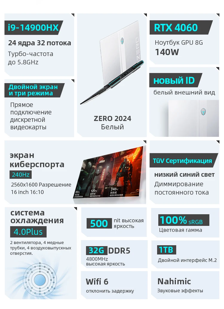 Игровой ноутбук Thunderobot ZERO 16, i9-14900HX, RTX4060, 240 Гц