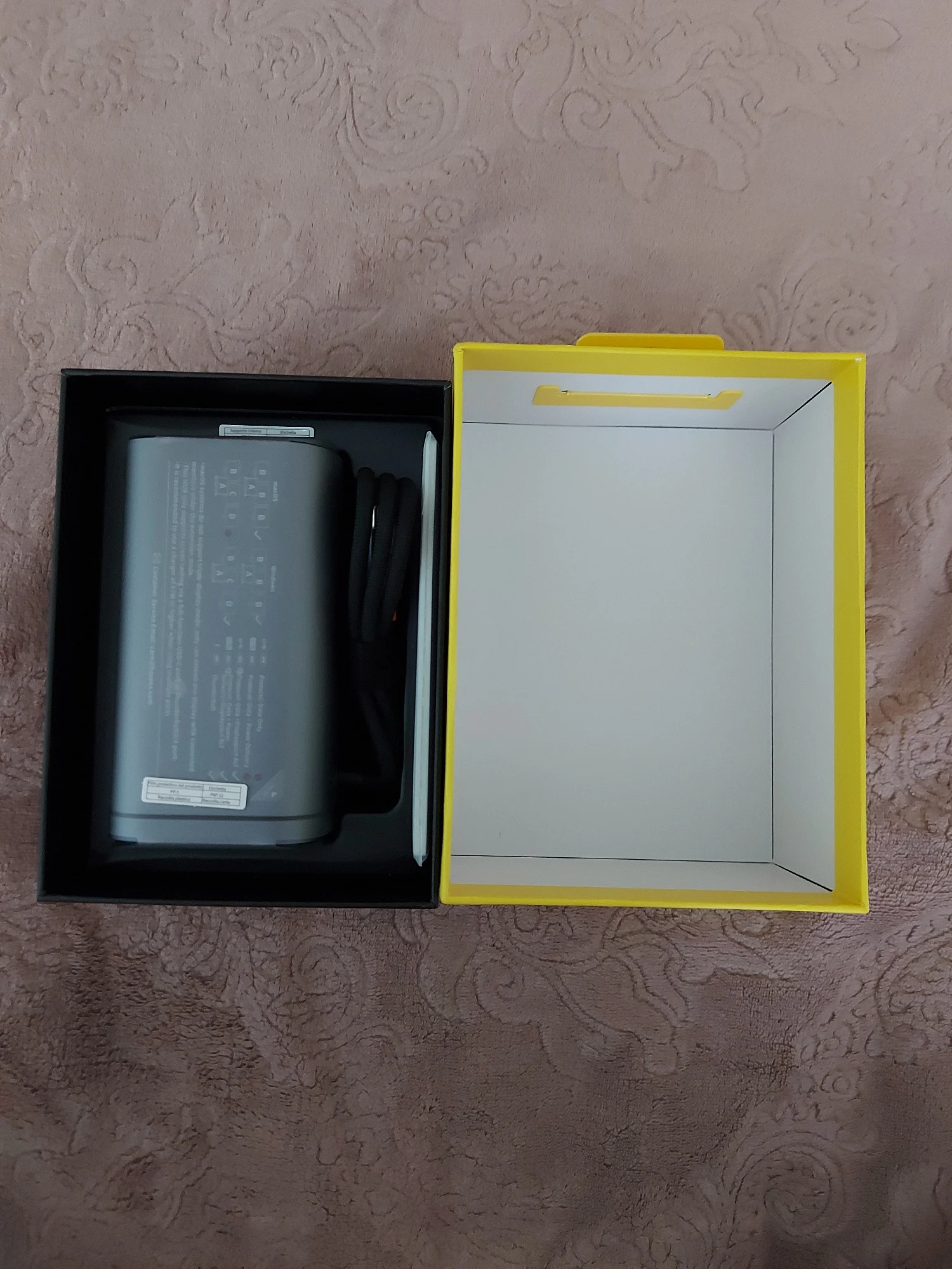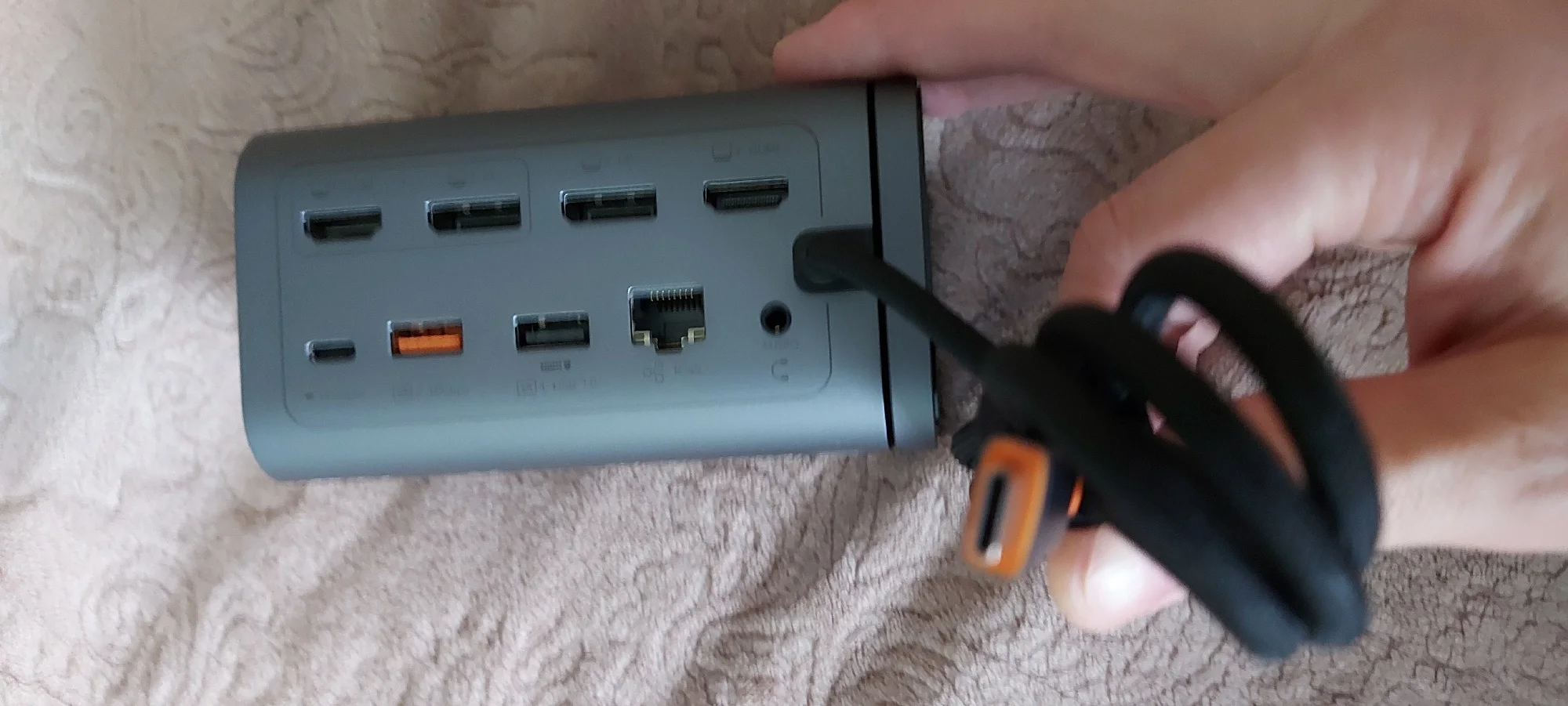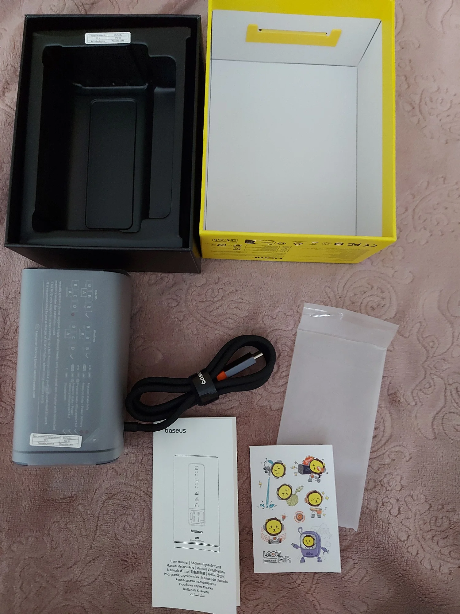 Pros: +Small and compact. +Heavy. Stands firmly, even if the base is not sticked. +Looks fancy. +Got rid of a bunch of wires. Cons: -Built-in cable. What an of idiocy? The last built-in cable I saw was on a CRT monitor from 2005. -Not a single PD port. You can't charge your phone normally with this thing. Even the most cheapest Akasis have at least 1 PD connector. What a shame. -60W at the output MAX. Even if the input charger is 140W. And this is not stated ANYWHERE. At the same time, all the pictures boast about 100W... At the input... So what? What is the point of this information? The laptop complains that a shitty charger is connected. It also consumes no more than 65W at the input. -Absolutely pointless lock button. Sum: I bought it with a coupon for 7900 and, considering the downsides, I feel shortchanged. Плюсы +Маленький, компактный. +Увесистый. Стоит уверенно, даже если не приклеен. +Стильно выглядит. +Избавляет от вороха проводов. Минусы -Встроенный кабель. Это что за идиотизм? Последний встроенный кабель я видел на пузатом мониторе из 2005. -Нет ни одного PD разъёма. Телефон от этой балалайки нормально не зарядить. Даже у самых нищебродских Акасис есть хотя бы 1 PD разъём. Позорище. -На выходе не более 60W. Даже если на входе ЗУ 140W. И об этом не написано НИГДЕ. При этом на всех картинках хвастаются, что 100W... На входе... И чё? Зачем эта информация? Ноут жалуется, что подключено дерьмовое зарядное устройство. Потребляет на входе так же не больше 65W. -Абсолютно бессмысленная кнопка блокировки. Итого: Я взял с купоном за 7900 и, с учётом минусов, мне этих денег жалко.