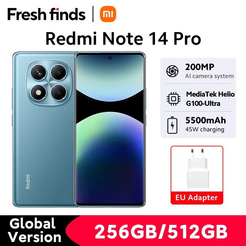 Xiaomi Redmi Note 14 Pro 4G Смартфон Глобальная версия 256 ГБ / 512 ГБ ПЗУ MTK Helio G100-Ultra Камера 200 МП 45 Вт
