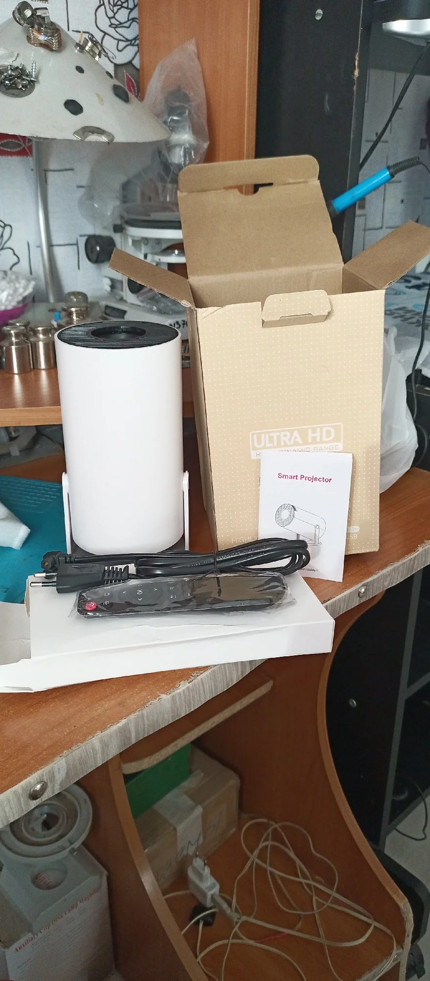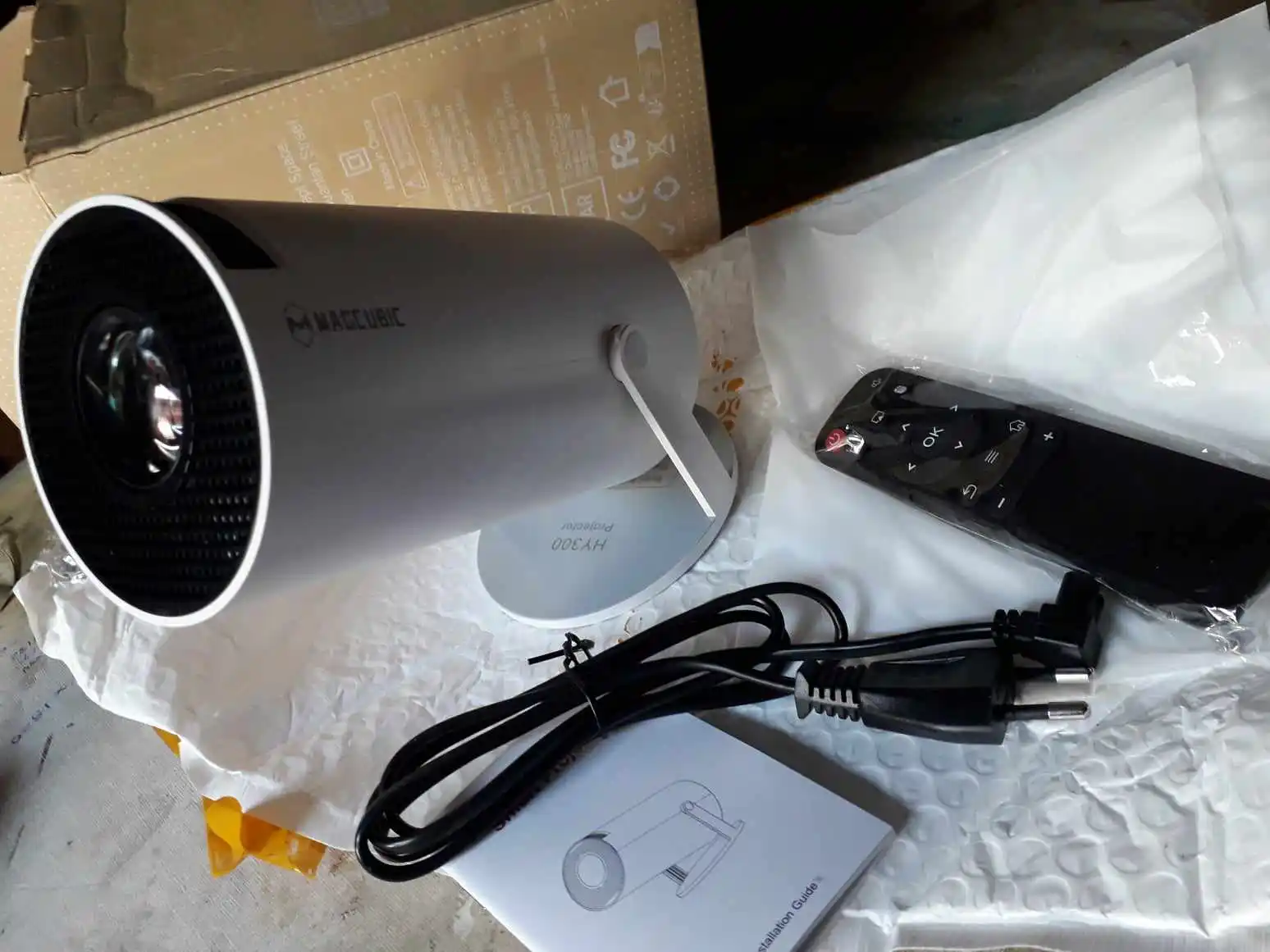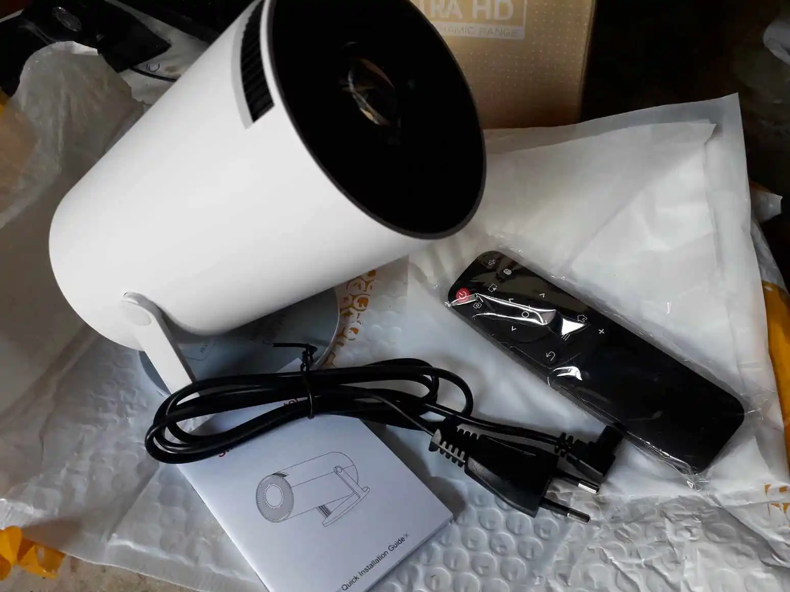 ДОМЧАЛАСЬ В СРОК ДО ПЕРМСКОГО КРАЯ КАК И ОБЕЩАНО ЗА 5 ДНЕЙ.УПАКОВАНО В ПАКЕТ,НО НИКАКИХ СДАВЛИВАНИЙ И НАРУШЕНИЙ КОРОБКИ НЕТ. В КОМПЛЕКТЕ ПУЛЬТ,МАНУАЛ(СРАНЫЙ ИНГЛИШ),ПРОВОД. В ОБЩЕМ ЗАПУСТИЛ СИЕ ЧУДО НА ПОТОЛКЕ.РЕЗУЛЬТАТ КОНЕЧНО ПОРАЗИЛ.АНДРОИД ЛЕТАЕТ,ЦВЕТА СОЧНЫЕ ДАЖЕ НА ПОТОЛКЕ.ФОРМАТ ОБЗОРА КАК В КИНОТЕАТРЕ. В ОБЩЕМ ДОВОЛЕН ПОКУПКОЙ.ВНУКАМ НА РАДОСТЬ.ЖЕЛАЮЩИМ,МОЖНО СМЕЛО БРАТЬ.