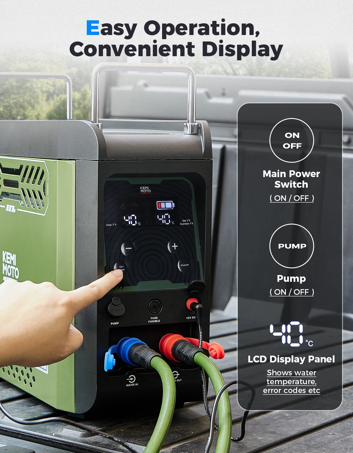 Душ для кемпинга с горячей водой со складной ручкой и ЖК-дисплеем, прост в установке, удобен в демонстрации.