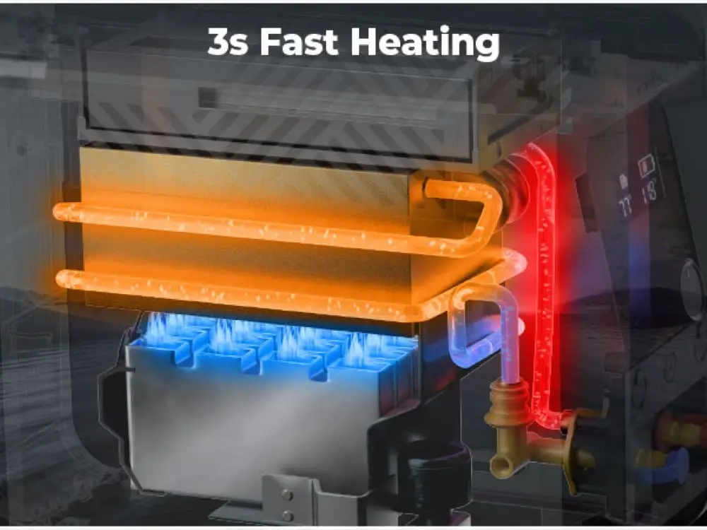 - Особые характеристики:Max 100 Mins Shower Time, 3s Instant Hot 20000 BTU