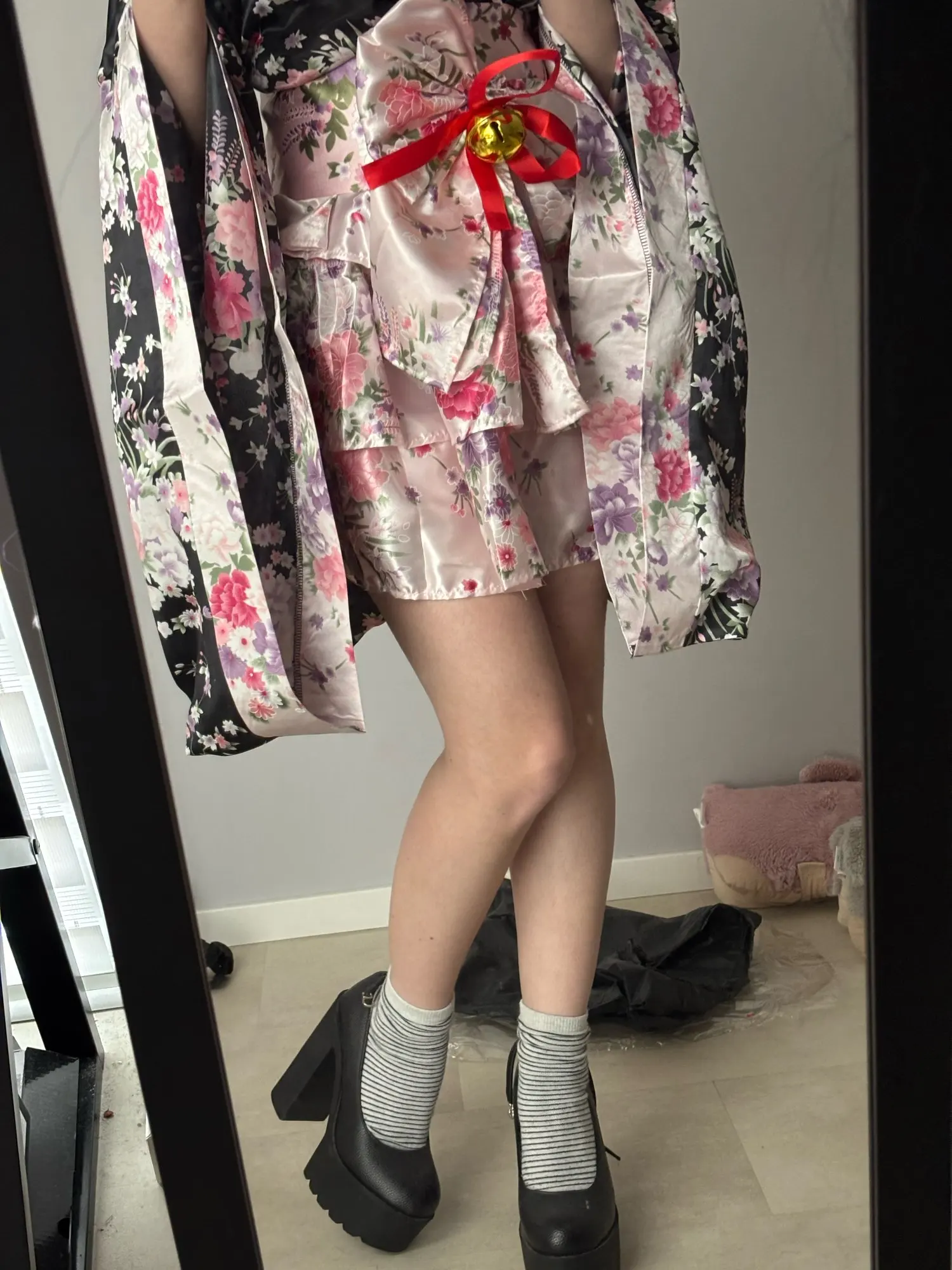 Традиционное японское кимоно, халат Kawaii, розовое сакура, платье Лолиты с бантом и принтом, вечерние костюмы для Хэллоуина, гейша, костюмы для косплея
