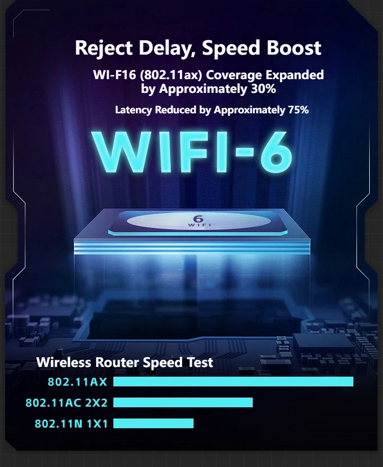 Беспроводная карта Intel WIFI6 поддерживает протокол 802.11AX. Поддержка диапазона 50 ГГц. Теоретическая максимальная полоса пропускания 2,4 Гбит/с. Поддержка MU-MIMO. Поддержка интерфейса Bluetooth5.2 M.2 2230.