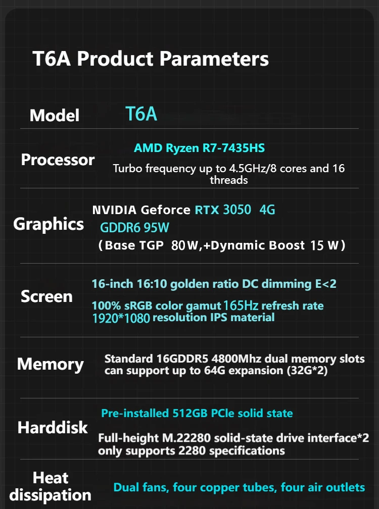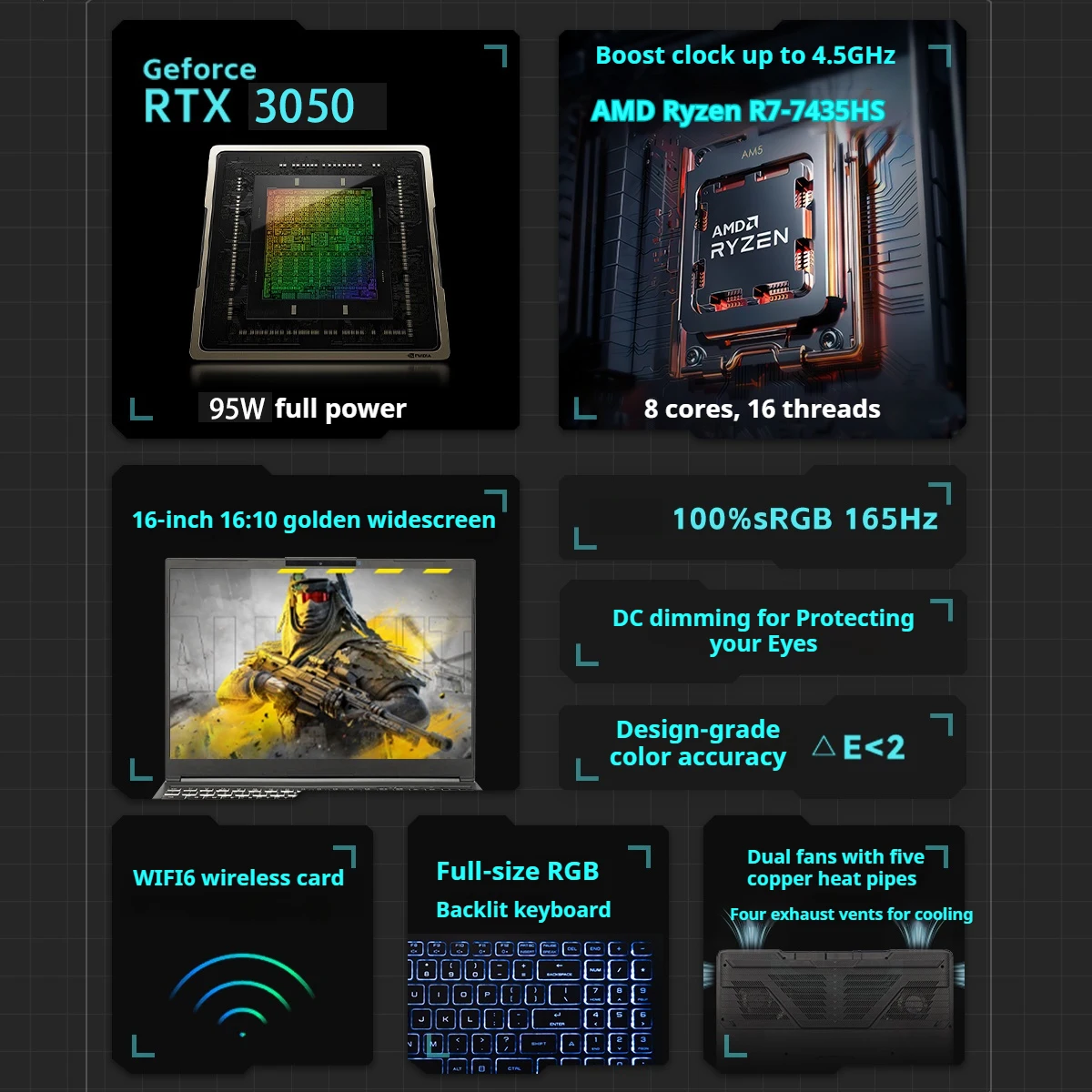 Игровой ноутбук Firebat T6A, 16", 16/512ГБ, R7 7435H, RTX 3050, DOS