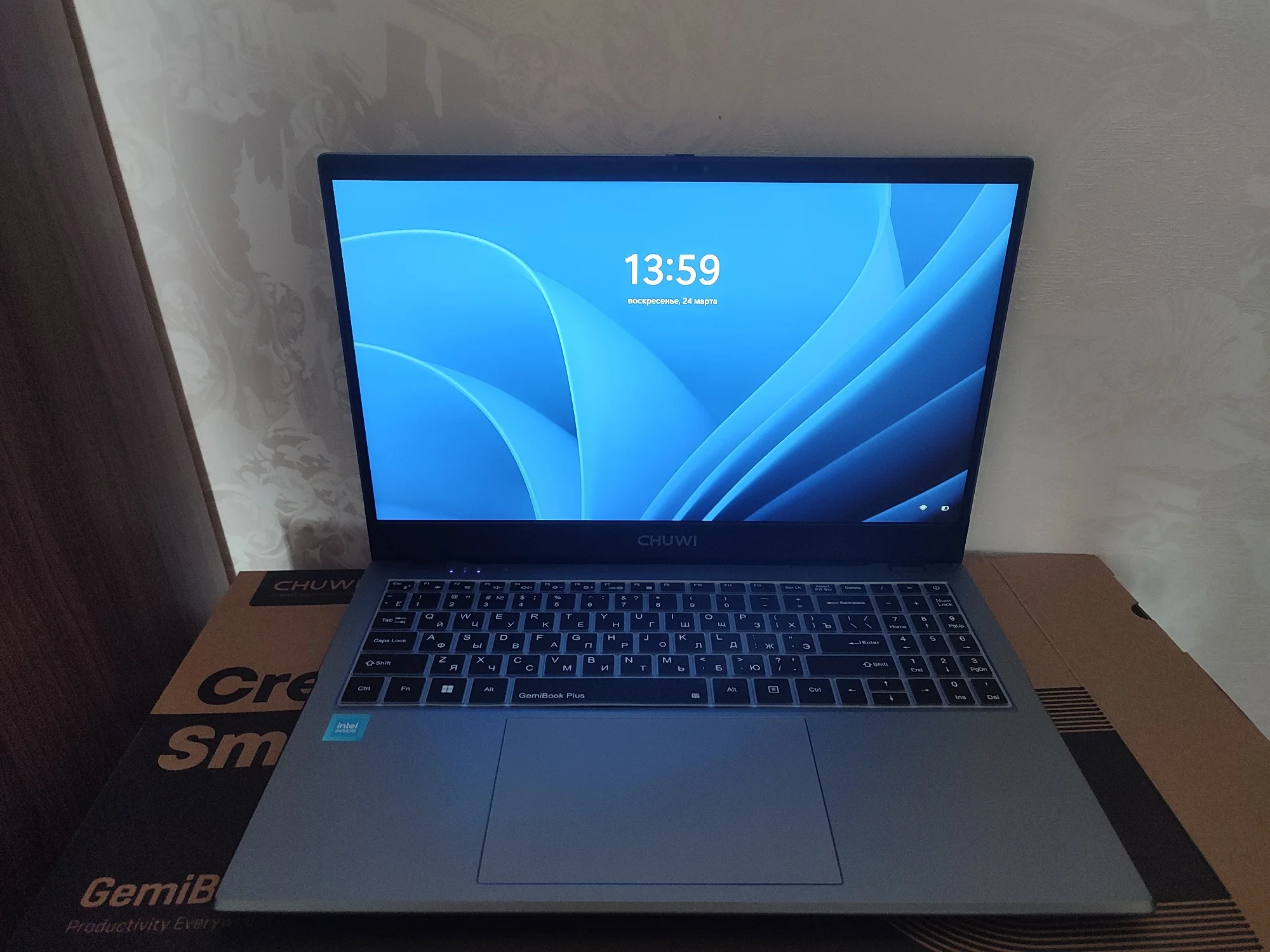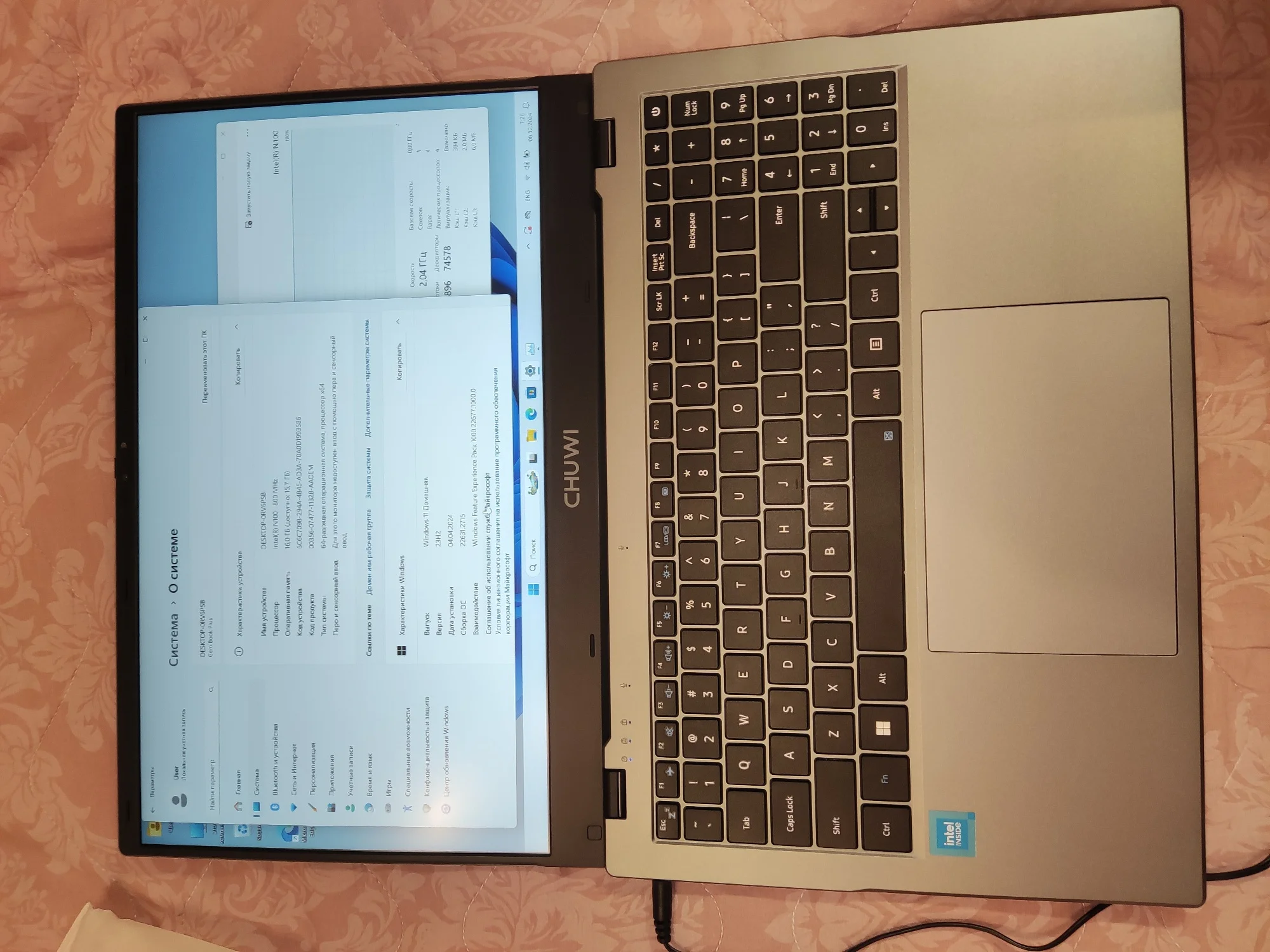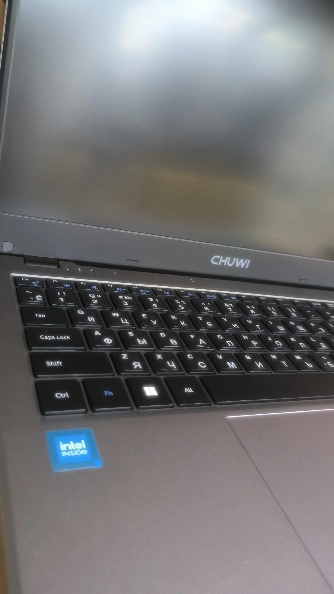 Брала на замену своему старенькому Асусу. По работе приходится много печатать - очень много) Старый ноут не справлялся - буквально пять-шесть открытых вкладок в браузере приводили к ощутимому нагреву и постоянным уведомлениям о чрезмерной нагрузке. Бесил дико)) А по работе приходится открывать по десятку и больше вкладок и одновременно работать с текстовыми приложениями и фоторедакторами. Честно говоря, остановилась на нем в последний момент, потому что скидка была такая привлекательная, что не устояла. Посмотрела характеристики процессора и решила - была не была. Пользуюсь второй день. Первые впечатления - он тихий, по сравнению с предыдущим. практически бесшумный. Раскладка только латиница. Но продавец положил силиконовую накладку на клавиатуру с кириллицей. Для меня она стала открытием - легла идеально, не ерзает, не съезжает. Клавиши тихие, достаточно мягкие (в плане нажатия), то есть при печати усилие минимальное. Кстати, в моем экземпляре звук нажатия на тачпад громче, чем звук нажатия на клавиши)) Тачпад достаточно громко клацает и щелкает и при одиночных-двойных кликах в центральной части, и при нажатии на углы. А еще он огромный (тачпад). Пока еще не определилась записать это в достоинства или странности) Прямо из коробки ноут готов к работе. Настройка системы заняла буквально пару минут. Активация Windows прошла мгновенно. Перед первым включением дала ему отогреться пару часов (принесла с мороза), заодно за это время он полностью зарядился. Рядом с разъемом для подключения зарядного провода есть светодиод, который при зарядке меняет цвет с красного на зеленый. Сегодня юзаю его на батарее. За три часа потерял 35% заряда. Не много не привычный 11 Home - но это лично для меня, я, как правило, работала на Pro. Корпус пластиковый - ровный, гладкий, без зазоров. Не скрипит, не болтается. Выглядит очень аккуратно. Корпус тонкий. Порты сгруппированы ближе к экрану. Крышка одной рукой не открывается - нужно двумя и с усилием))) Экран матовый и достаточно блеклый, но настраиваемый. Шнур питания стандартной толщины - не хлипкий. Сам адаптер на вилке. Он большой и Г-образный, то есть, мне пришлось переставлять сетевой фильтр в другое место, потому что вилка старого ноута втыкалась сверху вниз, а для этого нужно больше места. Кстати, можете посмотреть на фото, насколько толще стандартный зарядный кабель у моего старого ноута. Для сравнения размеров на фото: зарядный провод с вилкой (Asus), зарядный провод Chuwi, зарядка от смартфона, пульт от телевизора. На первый взгляд - очень достойное устройство. Пока для моих целей подходит прекрасно. По заказу: товар был отправлен в день заказа. Отслеживался ровно до таможни. Потом по России - тишина. Пришел на неделю позже заявленного срока. Коробка изрядно "пожеванная", верхняя упаковка поцарапана и порвана, но сам ноутбук целый. Внутри картонной коробки он был вложен в толстенький пенопластовый короб. Это, видимо, его и спасло.