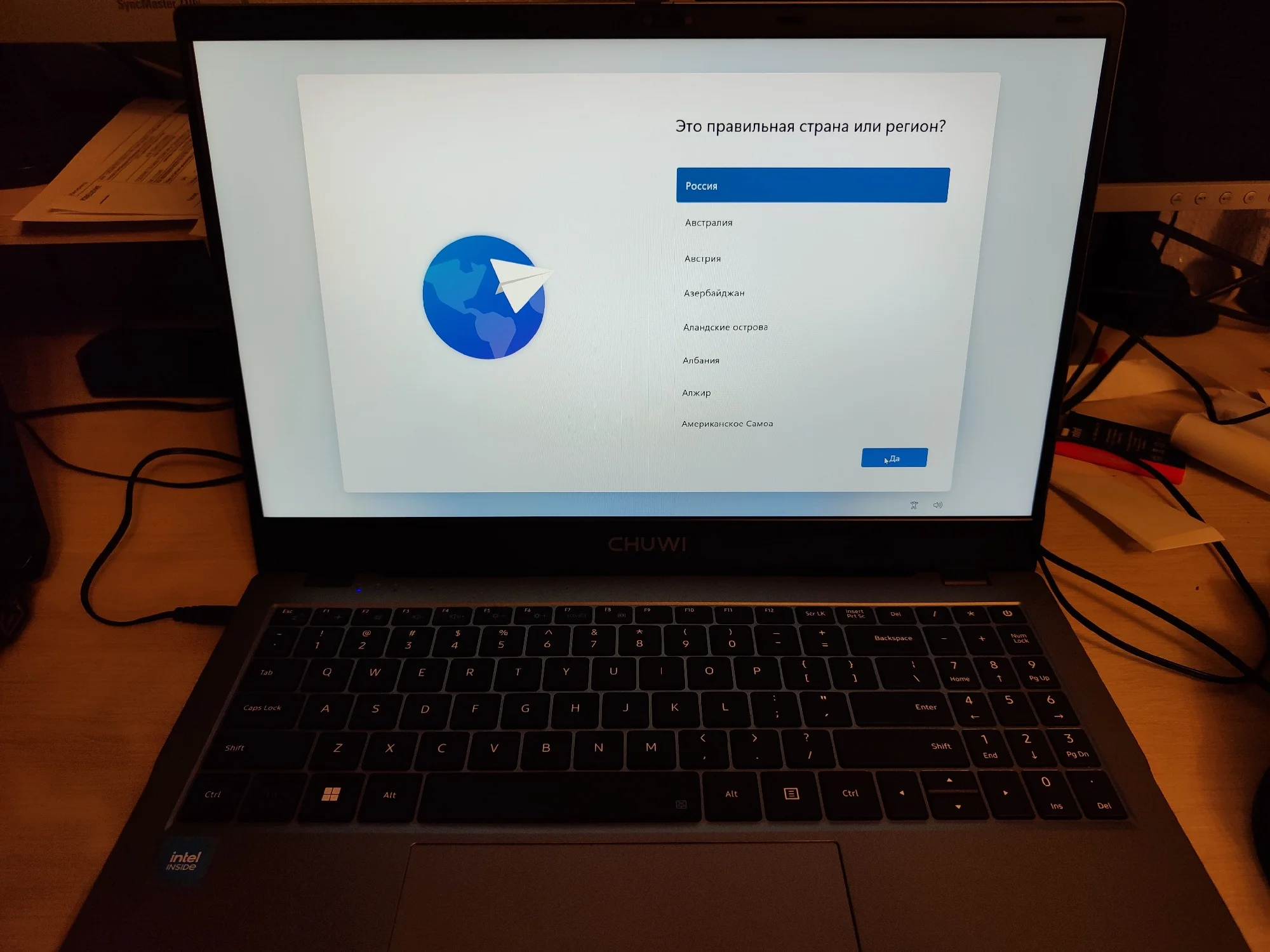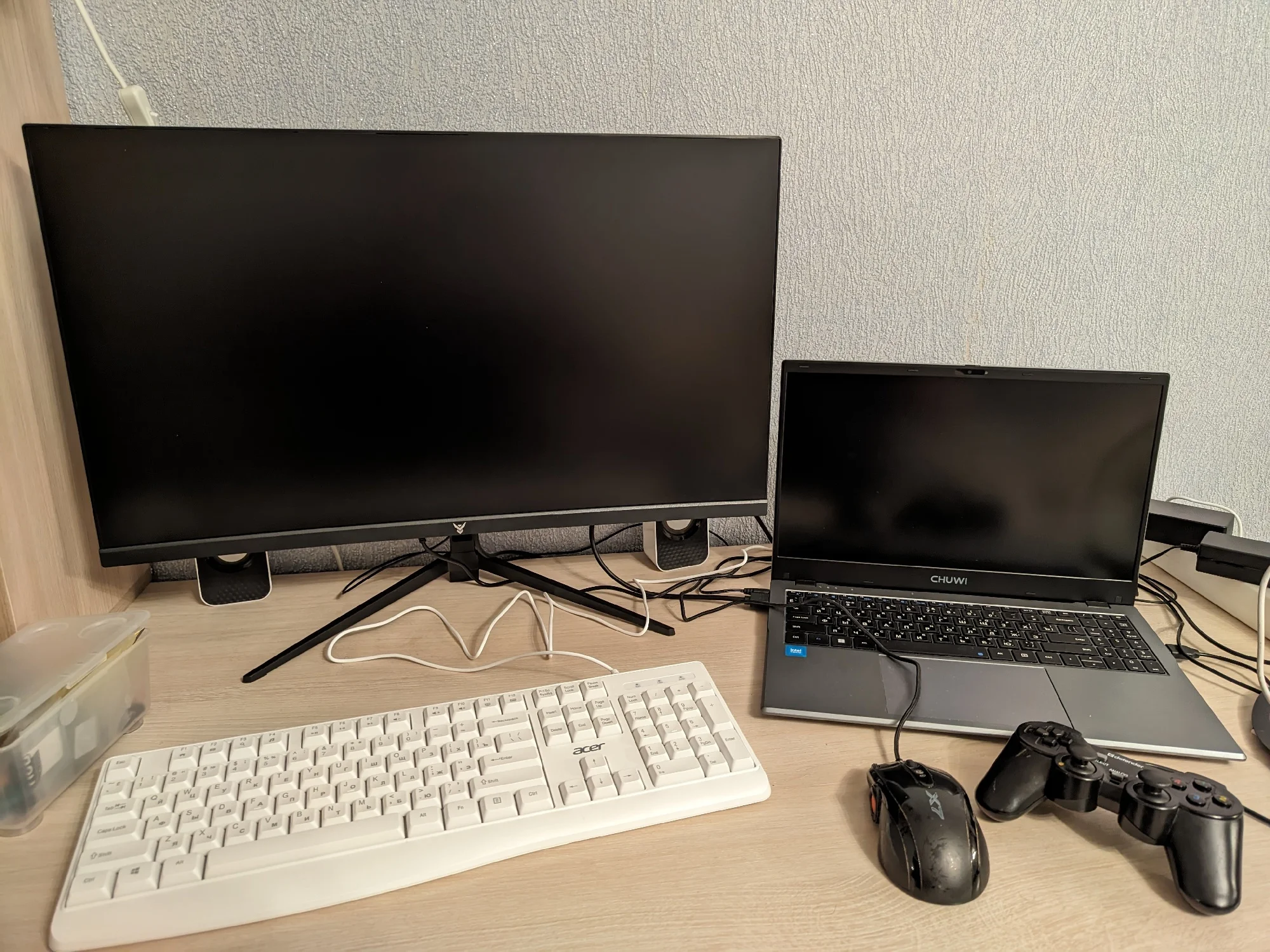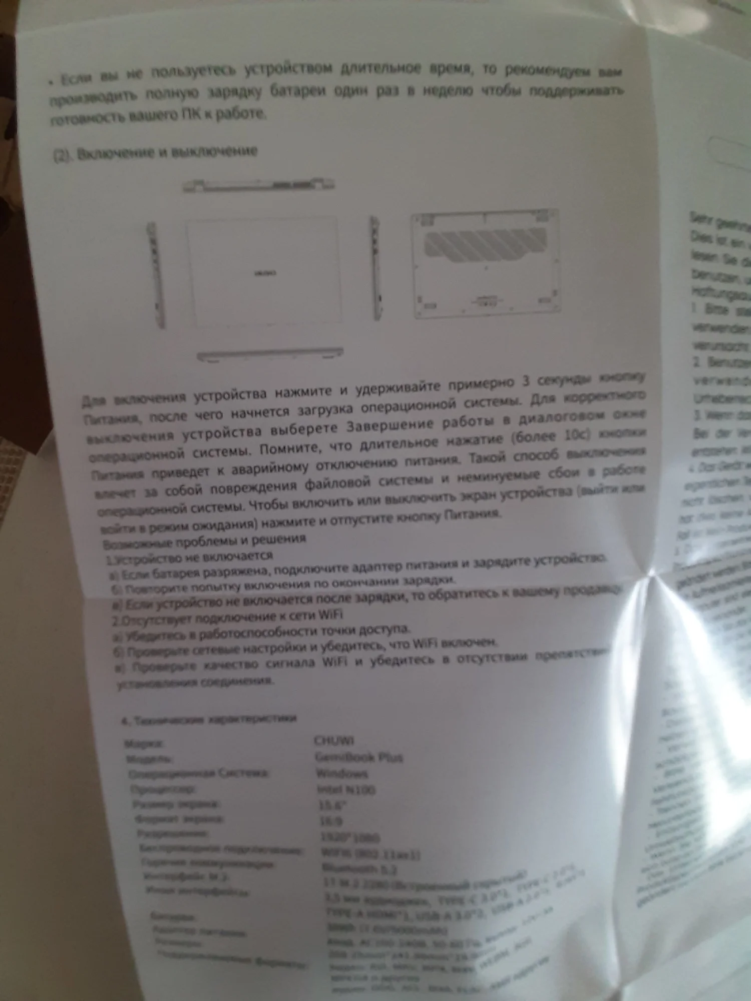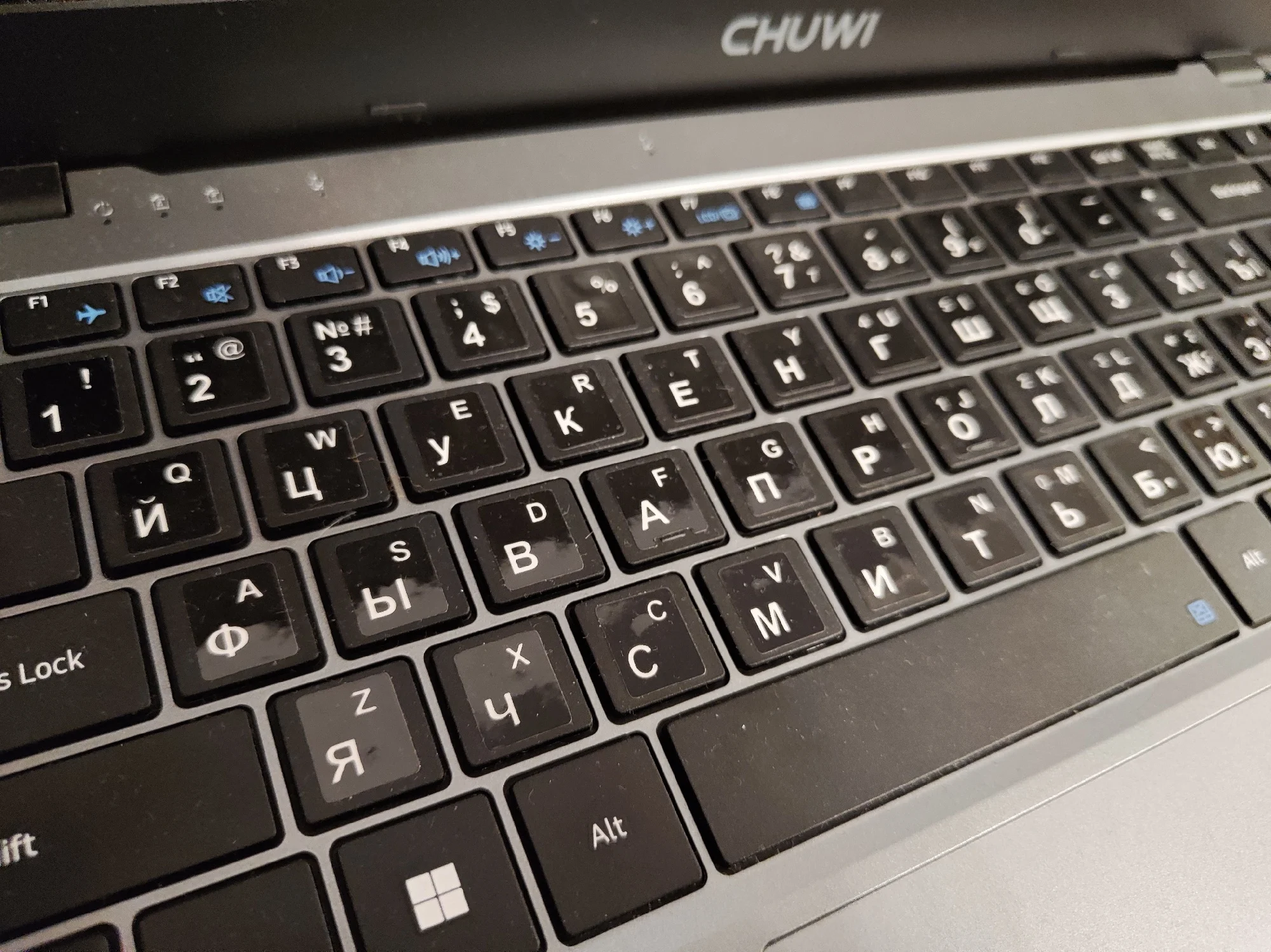 Брала на замену своему старенькому Асусу. По работе приходится много печатать - очень много) Старый ноут не справлялся - буквально пять-шесть открытых вкладок в браузере приводили к ощутимому нагреву и постоянным уведомлениям о чрезмерной нагрузке. Бесил дико)) А по работе приходится открывать по десятку и больше вкладок и одновременно работать с текстовыми приложениями и фоторедакторами. Честно говоря, остановилась на нем в последний момент, потому что скидка была такая привлекательная, что не устояла. Посмотрела характеристики процессора и решила - была не была. Пользуюсь второй день. Первые впечатления - он тихий, по сравнению с предыдущим. практически бесшумный. Раскладка только латиница. Но продавец положил силиконовую накладку на клавиатуру с кириллицей. Для меня она стала открытием - легла идеально, не ерзает, не съезжает. Клавиши тихие, достаточно мягкие (в плане нажатия), то есть при печати усилие минимальное. Кстати, в моем экземпляре звук нажатия на тачпад громче, чем звук нажатия на клавиши)) Тачпад достаточно громко клацает и щелкает и при одиночных-двойных кликах в центральной части, и при нажатии на углы. А еще он огромный (тачпад). Пока еще не определилась записать это в достоинства или странности) Прямо из коробки ноут готов к работе. Настройка системы заняла буквально пару минут. Активация Windows прошла мгновенно. Перед первым включением дала ему отогреться пару часов (принесла с мороза), заодно за это время он полностью зарядился. Рядом с разъемом для подключения зарядного провода есть светодиод, который при зарядке меняет цвет с красного на зеленый. Сегодня юзаю его на батарее. За три часа потерял 35% заряда. Не много не привычный 11 Home - но это лично для меня, я, как правило, работала на Pro. Корпус пластиковый - ровный, гладкий, без зазоров. Не скрипит, не болтается. Выглядит очень аккуратно. Корпус тонкий. Порты сгруппированы ближе к экрану. Крышка одной рукой не открывается - нужно двумя и с усилием))) Экран матовый и достаточно блеклый, но настраиваемый. Шнур питания стандартной толщины - не хлипкий. Сам адаптер на вилке. Он большой и Г-образный, то есть, мне пришлось переставлять сетевой фильтр в другое место, потому что вилка старого ноута втыкалась сверху вниз, а для этого нужно больше места. Кстати, можете посмотреть на фото, насколько толще стандартный зарядный кабель у моего старого ноута. Для сравнения размеров на фото: зарядный провод с вилкой (Asus), зарядный провод Chuwi, зарядка от смартфона, пульт от телевизора. На первый взгляд - очень достойное устройство. Пока для моих целей подходит прекрасно. По заказу: товар был отправлен в день заказа. Отслеживался ровно до таможни. Потом по России - тишина. Пришел на неделю позже заявленного срока. Коробка изрядно "пожеванная", верхняя упаковка поцарапана и порвана, но сам ноутбук целый. Внутри картонной коробки он был вложен в толстенький пенопластовый короб. Это, видимо, его и спасло.
