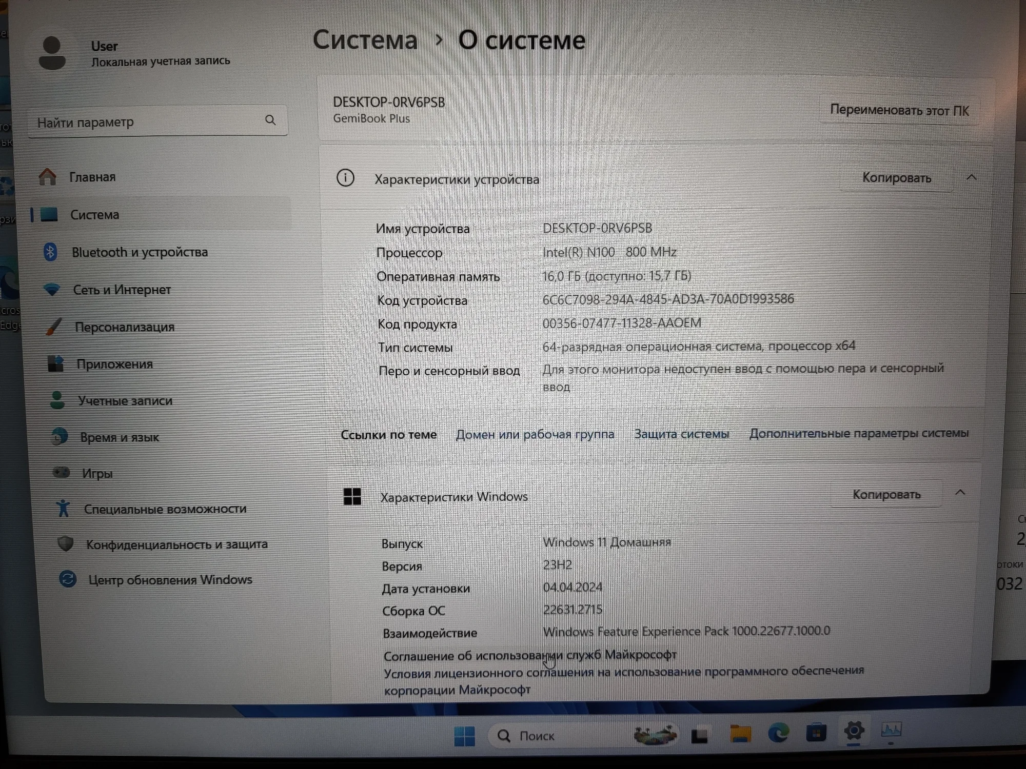 Обычный недорогой ноутбук, все характеристики соответствуют - процессор N100, памяти 16 Гб, диск SSD 512 Гб, разрешение дисплея 1920*1080, ips, с углами обзора всё хорошо. Диск полноценный NVME, модель rs512gssd510. Память запаяна, без возможности добавить, поэтому берите сразу вариант минимум на 16 Гб, чтобы потом не сожалеть. Достаточно лёгкий, корпус пластиковый - со временем поцарапается, но это не страшно. Открывается на 180 градусов, что удобно. Портов достаточно - слева круглая зарядка, HDMI, USB 3, USB C, наушники. Справа сеть, USB 3, USB 2, USB C - итого 3 обычных и два Type C, что очень неплохо. Увы, зарядку по Type C не поддерживает, а идущая в комплекте, особенно её тонкий провод, такое себе, переломится со временем. Сразу заказал угловой переходник 4.0*1.7 мм на type C 12 В, чтобы можно было универсальной заряжать. Процессор не топовый, и, не смотря на низкую потребляемую мощность, вполне себе заметно шумит вентилятором при установке обновлений, но при обычной работе его не слышно. Клавиатура без русских букв, в комплекте наклейки - были снаружи коробки, между ней и пупыркой, чуть не выкинул. Пойду относить на лазерную гравировку, но, т.к. она без подсветки, не прозрачная, как выйдет не знаю. Тачпад огромный, работает нормально, но мышка лучше. В целом своих денег, особенно с акциями, вполне стоит, растаможки нет.Vladimir B. 8 декабря 2024