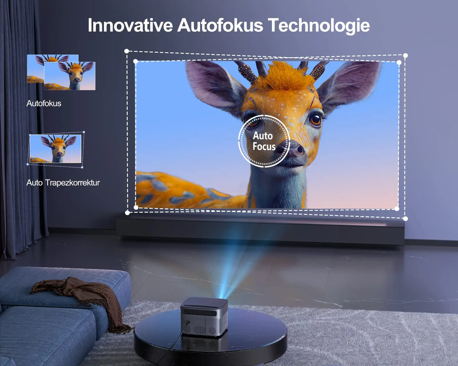 WiMiUS 2023 Newest Auto Focus & Auto 6D Keystone Correction Instead of fussy and repetitive manual adjustments, smart projector is equipped with auto-focus and auto-keystone system to ensure that whether you are projecting at an oblique angle or bumping the projector accidentally, the projected image is as sharp as possible automatically without you having to focus the lens yourself. Easy to Operate/Faster Setup Time/Increased Productivity/Reducing Eye Strain.