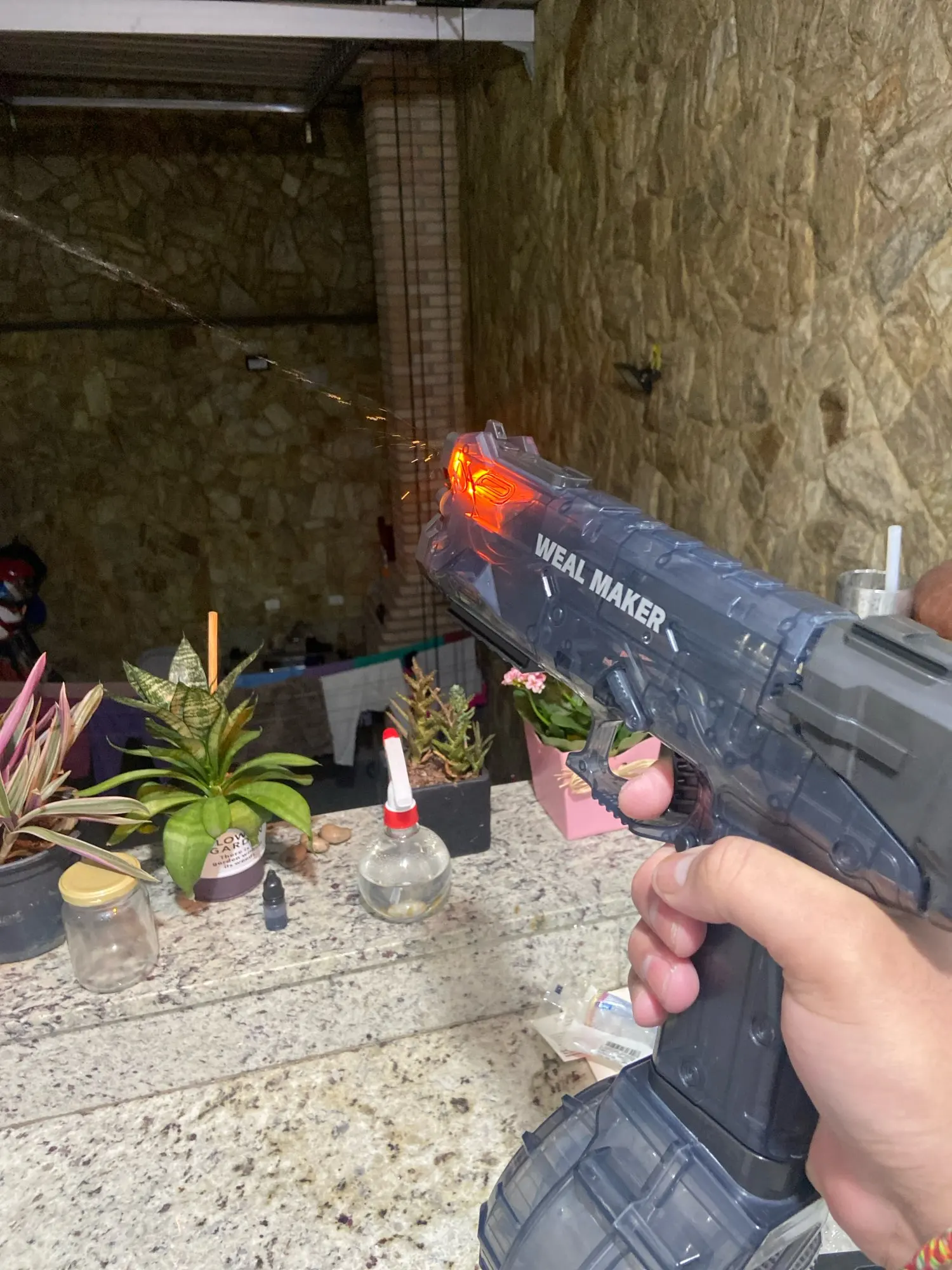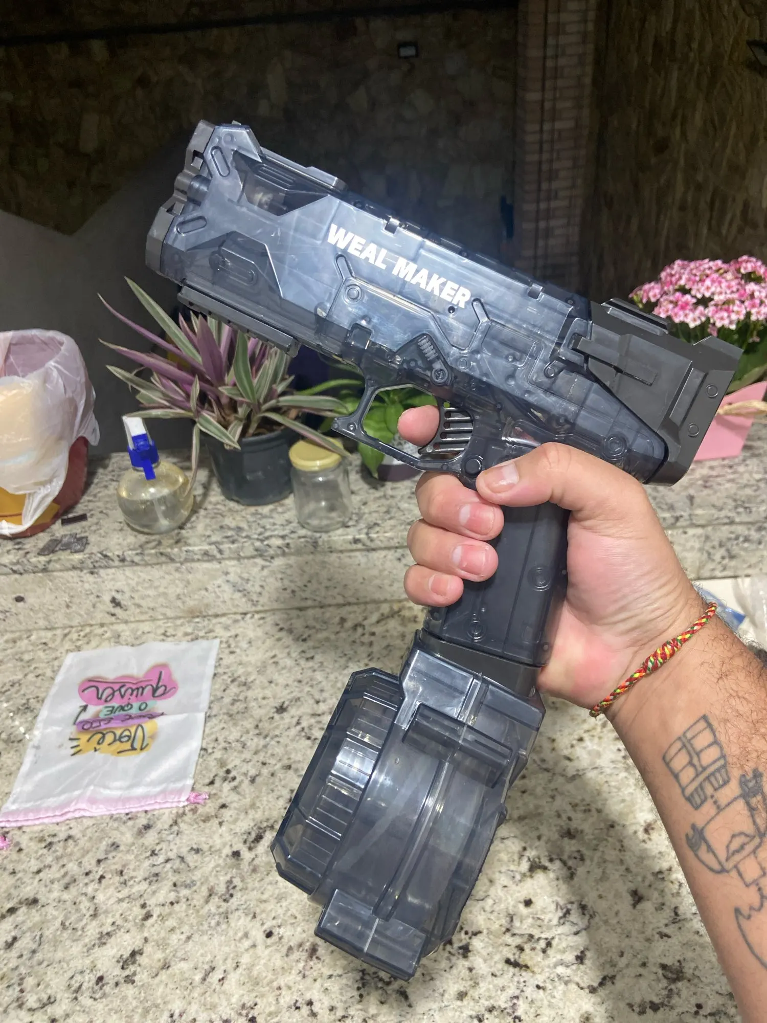 Какая крутая сделка! Мне понравилось, потому что это сделает водные войны намного веселее. У меня были проблемы, начиная работать должным образом, потому что воздух, должно быть, вошел в трубу, но я гремел несколько раз, и он уже работает. Выбрасывает воду далеко и не оказывает большого давления. Так что это не повредит, это хорошо. Светодиода нет этих вещей, он не дает эффекта видео, но он крутой также из-за шума и отдачи, все пришло правильно, и он работает хорошо. Я хотел мини-воды, но со скоростью любви это невозможно, так что я успокоиться с этой самой вещью. Стоит покупки в основном, если вы берете промо