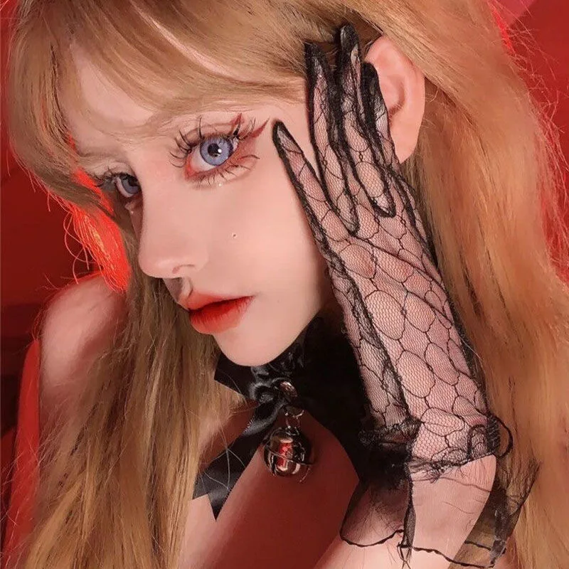Кружевные перчатки в стиле "Лолита", готические Ретро перчатки принцессы, белые сексуальные сетчатые черные аксессуары, свадебные рукава для девочек