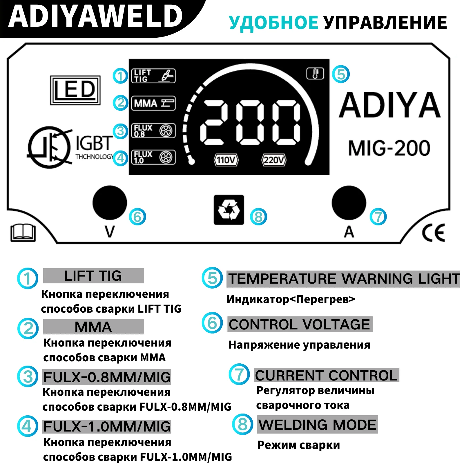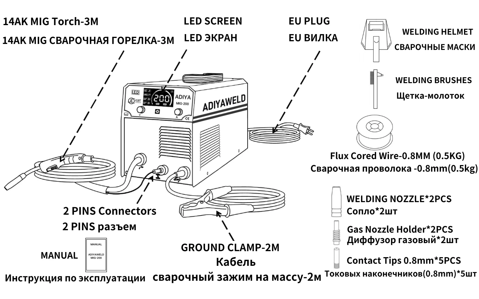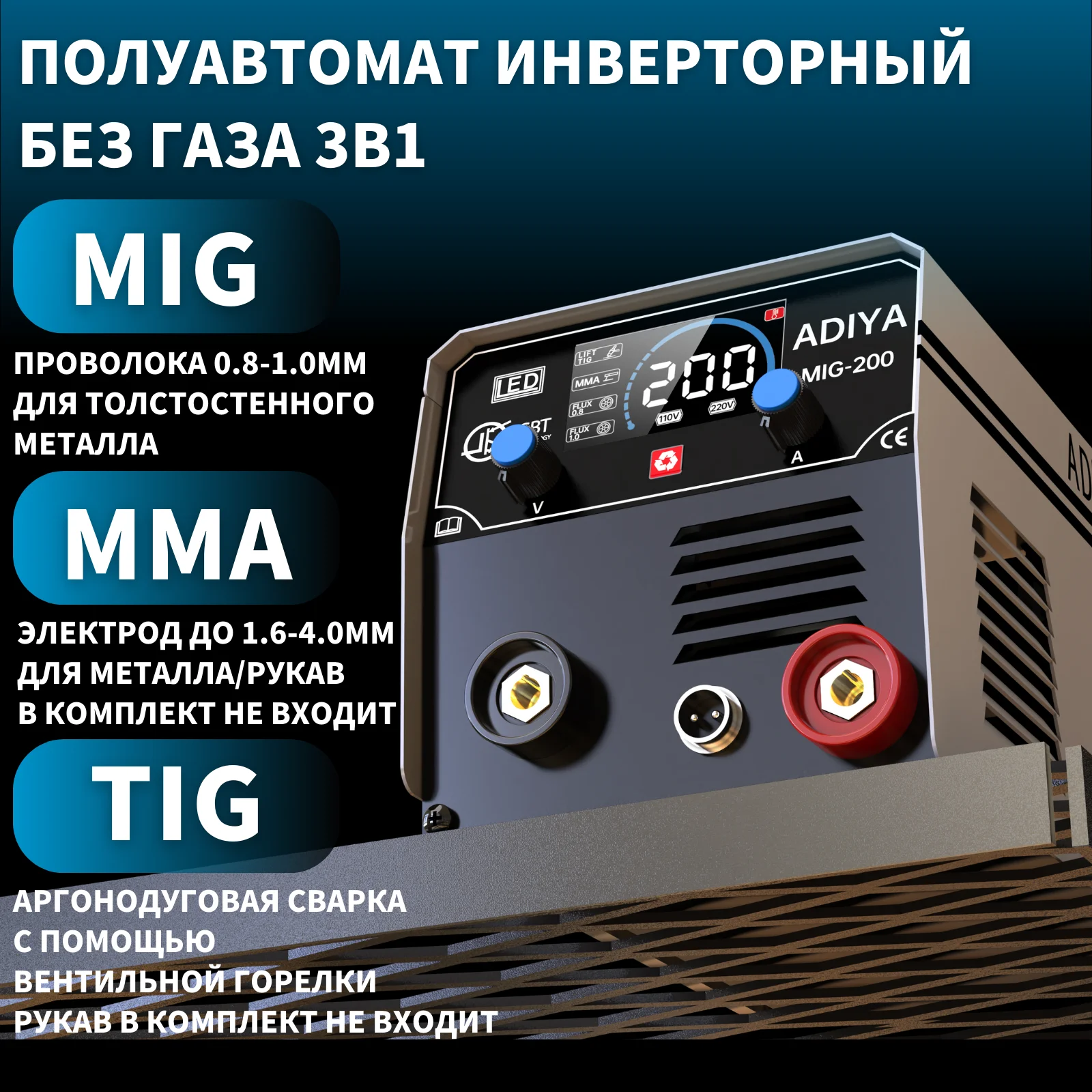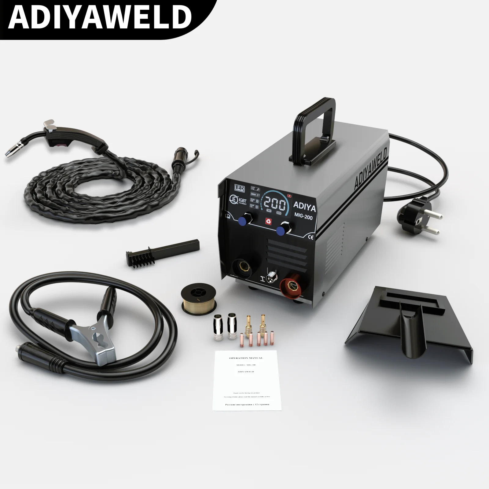 ADIYAWELD MIG200 3 в 1 Газовый сварочный аппарат MIG/MMA/Lift TIG Полуавтоматический сварочный аппарат с порошковой проволокой с флюсом Сварочный аппарат MIG