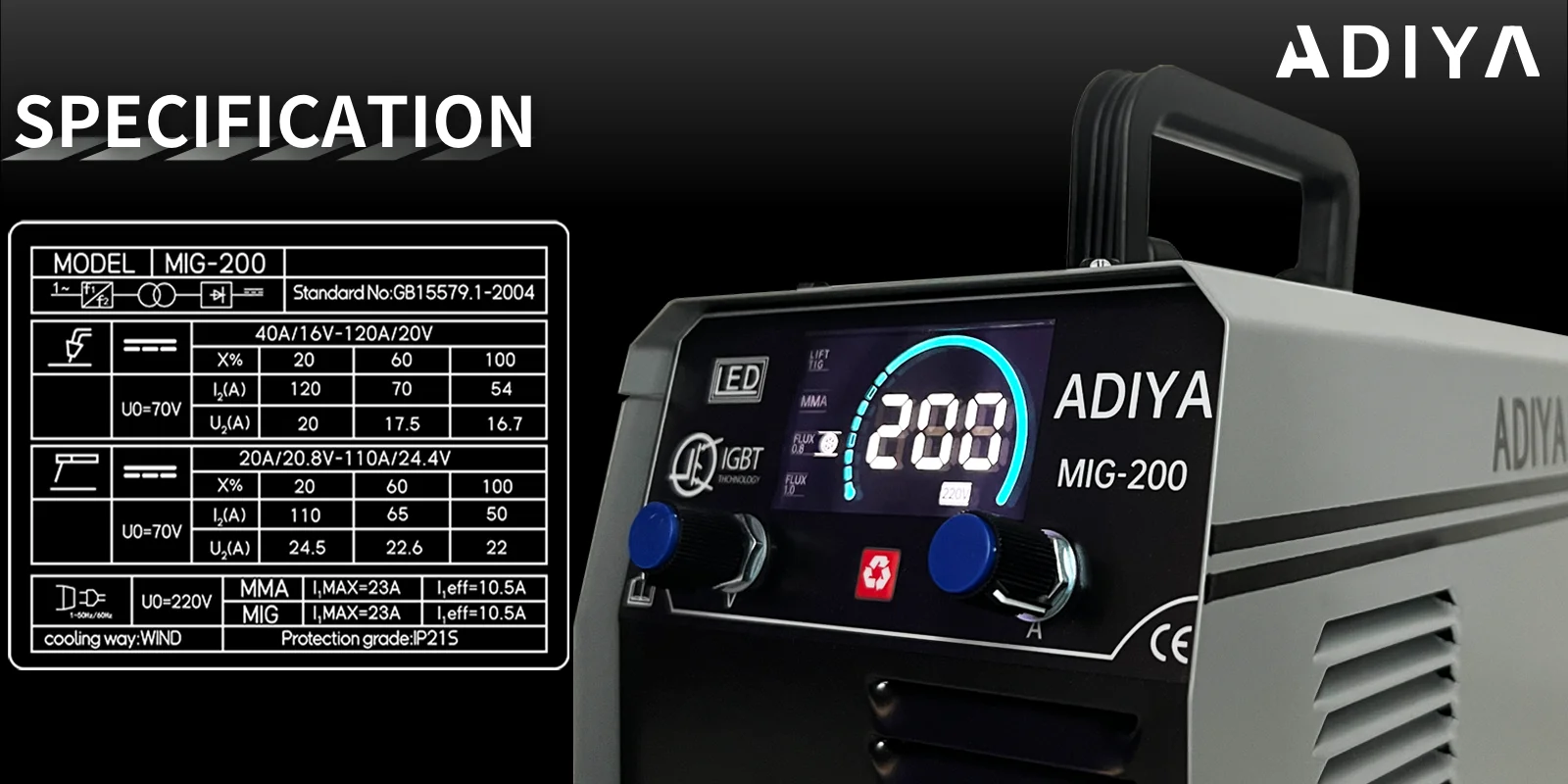 - Welding Current Range:20-200A