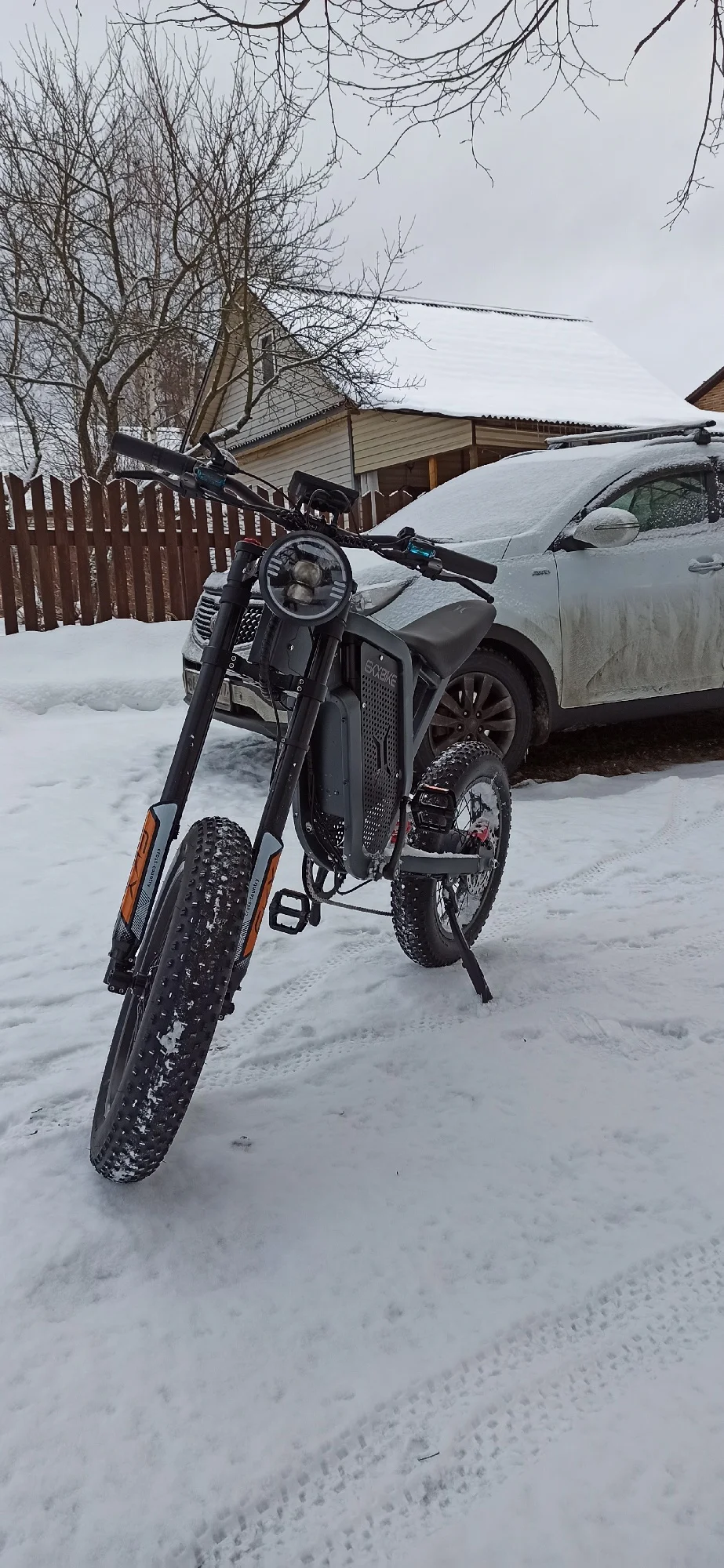 достойный байк для покатушек не только по асфальту но и по пересеченке, в гору заходит уверенно! Пришлось обкатывать зимой, готовясь к лету. По небольшому снегу идёт уверенно, по высокому, юзает, по насту от снегоходов тоже норм. Педали крутить не очень удобно, поэтому лучше катить за счёт мотора. Подобрал крылья, но отсек под аккумулятором сильно забивается снегом, значит летом будет грязным и хрен туда залезть, почистить... В целом рекомендую.RU s. 15 февраля 2024