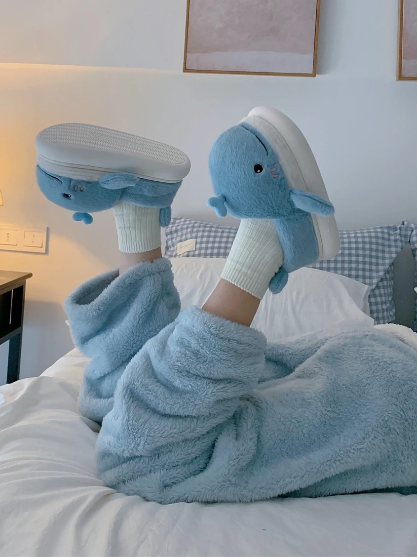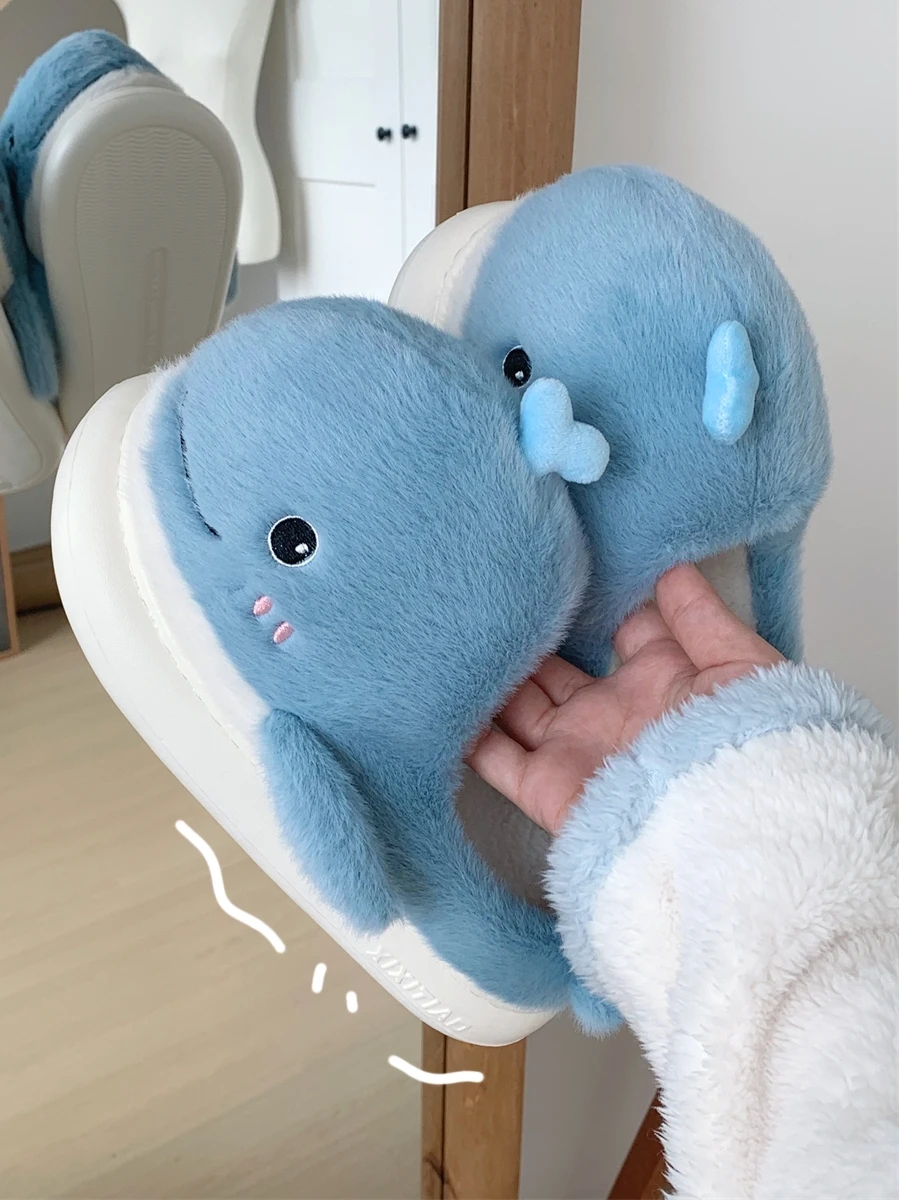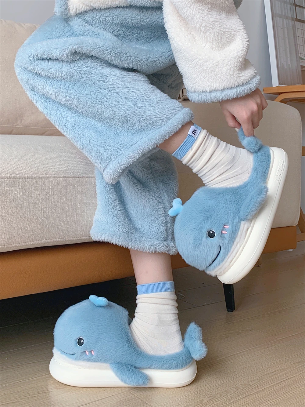 Тапки Ins плюшевые для мужчин и женщин, домашние тапочки с мультяшным Китом, Симпатичные Нескользящие теплые тапочки для дома, для родителей и детей