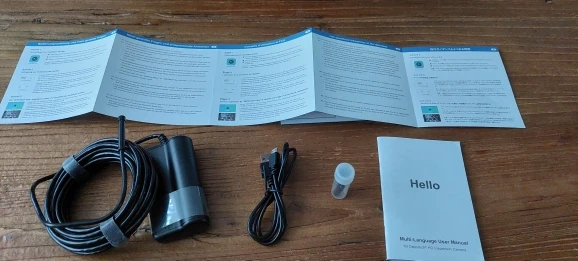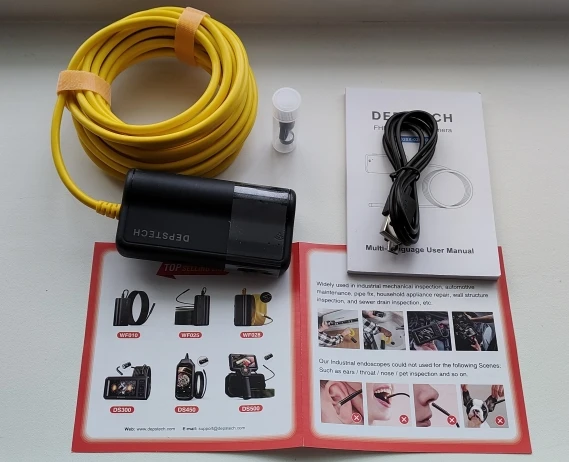 Быстрая доставка и получил через неделю во Франции. Скорее рад: камера достаточно для использования. 5 м пикселей было бы лучше. Микрокамера находится на гибком жестком жестком пластике, который легко складывается. Светодиодное освещение яркое! Есть руководство с объяснениями на всех языках, и инструкции совершенно понятны. Приложение для загрузки доступно на Google Store и не занимает места. Связь между приложением и эндоскопом Мгновенная. Приложение позволяет делать фотографии или снимать. Соединение между Endoscope и телефоном осуществляется через Wi-Fi или USB-кабелем. Несколько маленьких магнитных крючков можно прикрутить к концу лампы! Все оборудование легко помещается в небольшую коробку: Идеально подходит для размещения в ящик для инструментов!