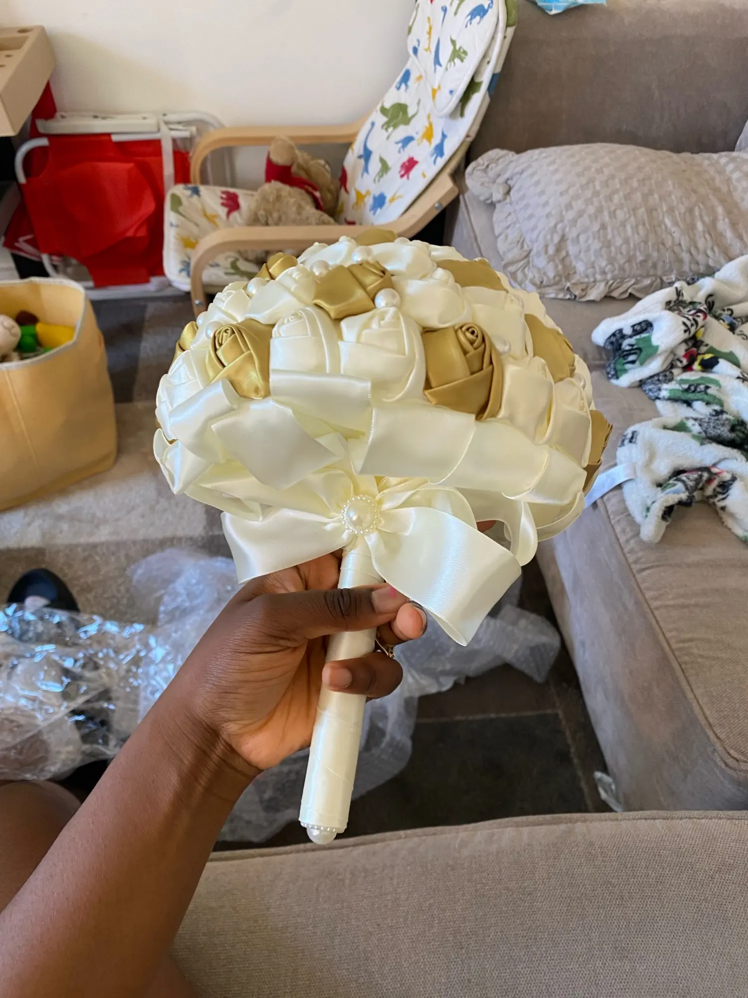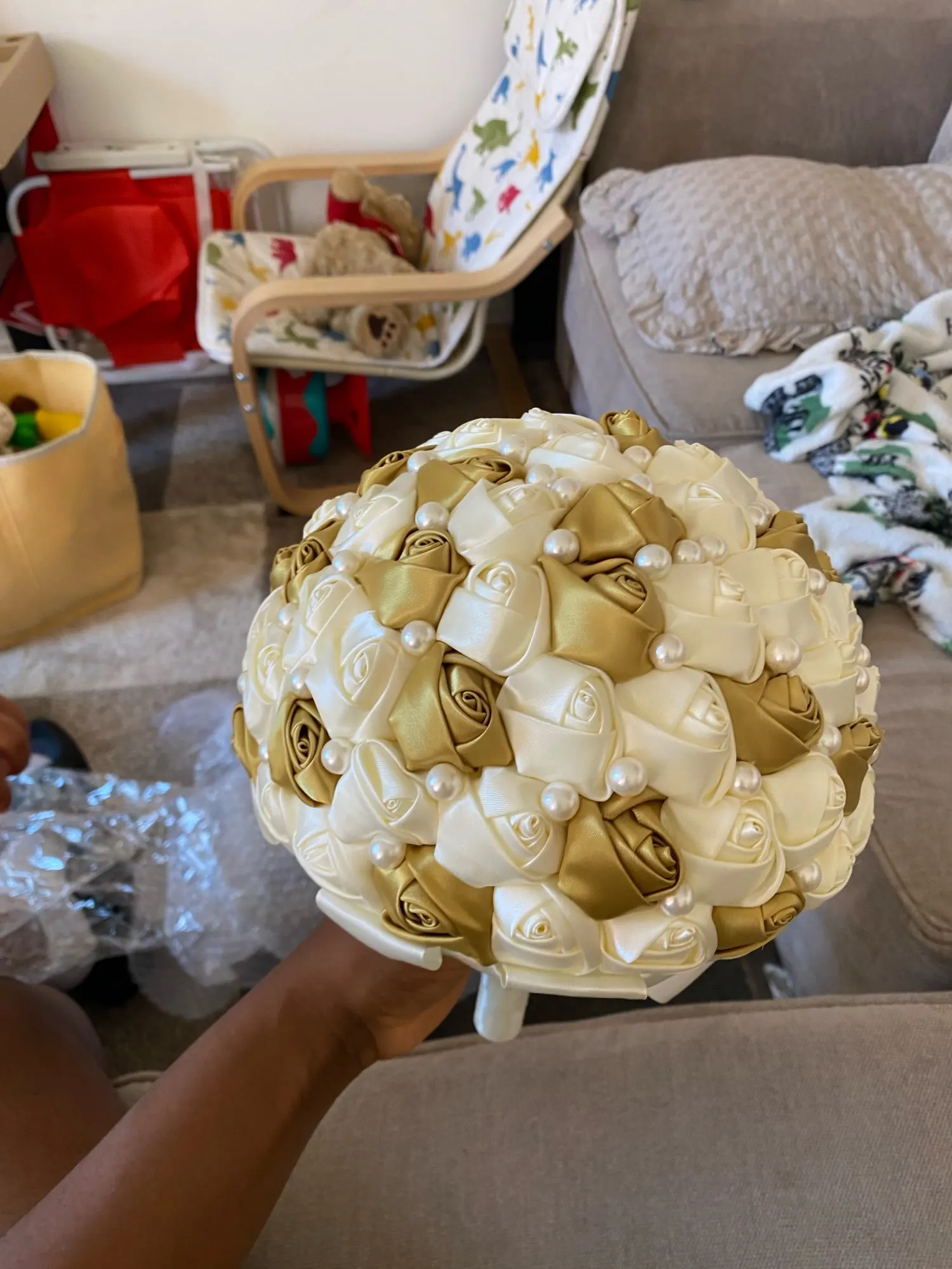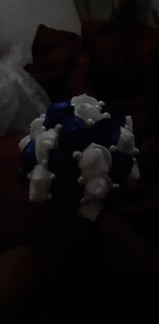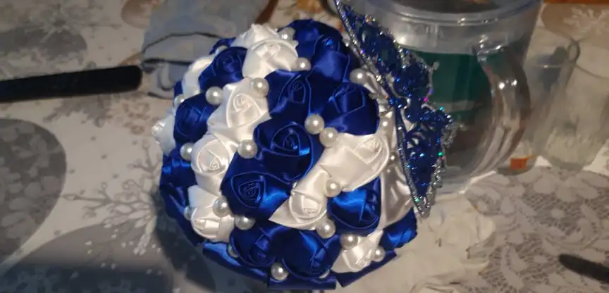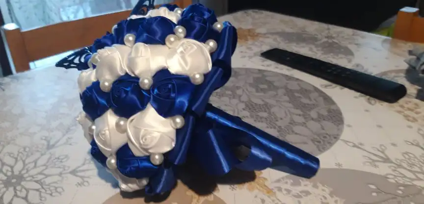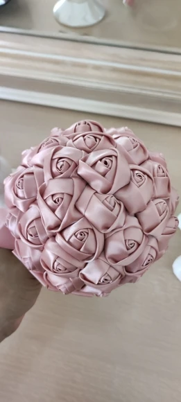 Очень хороший букет, я получил 15 см. Цветы из сатина, очень компактные, без отверстий. Очень быстрая доставка. Нет дефекта клея. Рекомендовать. Я могу украсить своей бабочкой одного цвета!sophie C. 16 февраля 2022