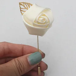 Свадебная бутоньерка Marfim шелковая роза золотого цвета